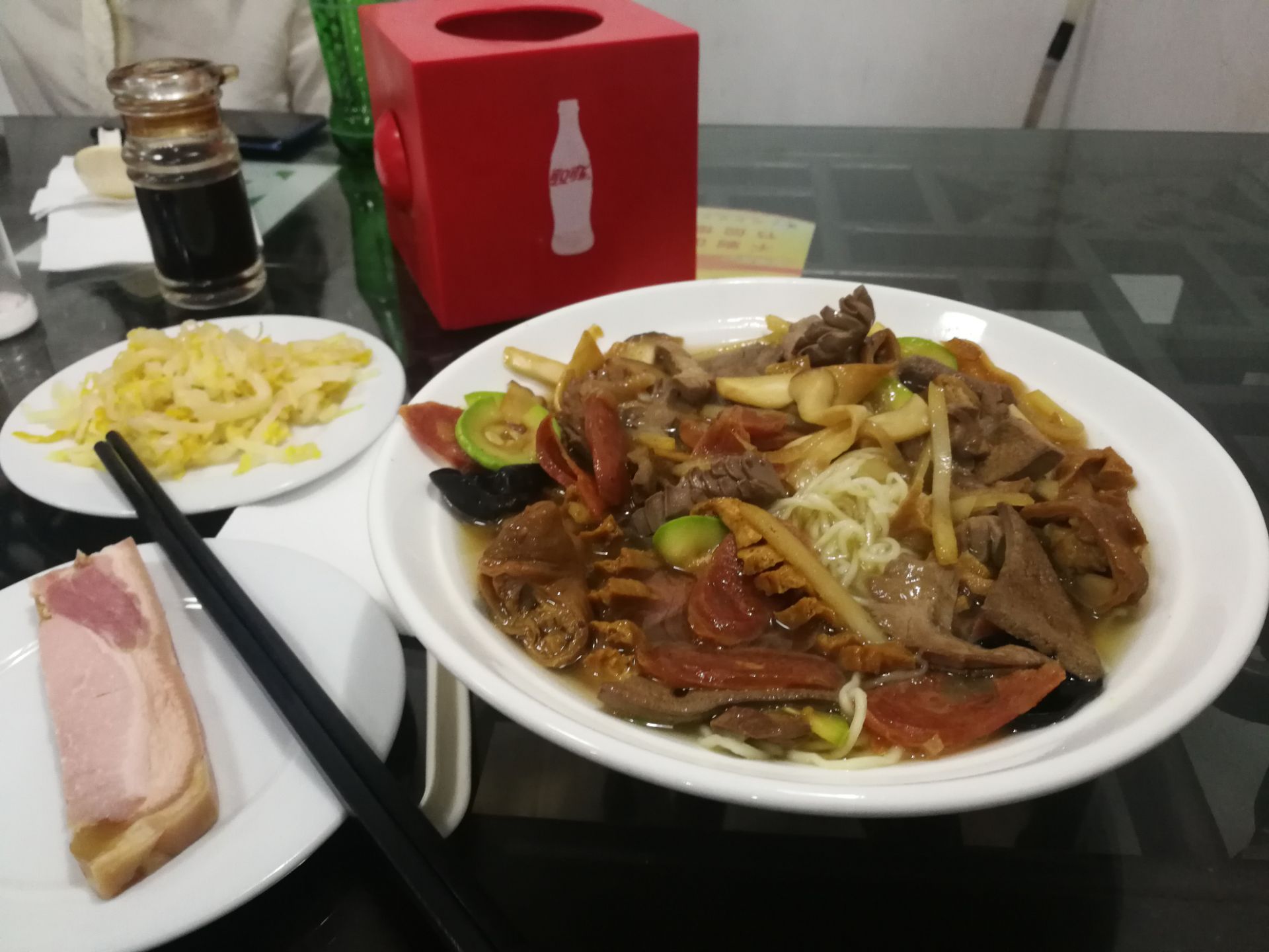 感觉不错呀,在小巷子里的一家面馆,老板文邹邹的,每一份面都是现炒浇头。老板端着一碟炒好的浇头往面里一浇,感觉超级满足。酸菜和肴肉是装在另外的碟子里端上来的,老板特地嘱咐不要和进面里。酸菜很解腻。不足之处就是有点咸,在扬州吃饭一直感觉很咸,难道是我吃的淡?