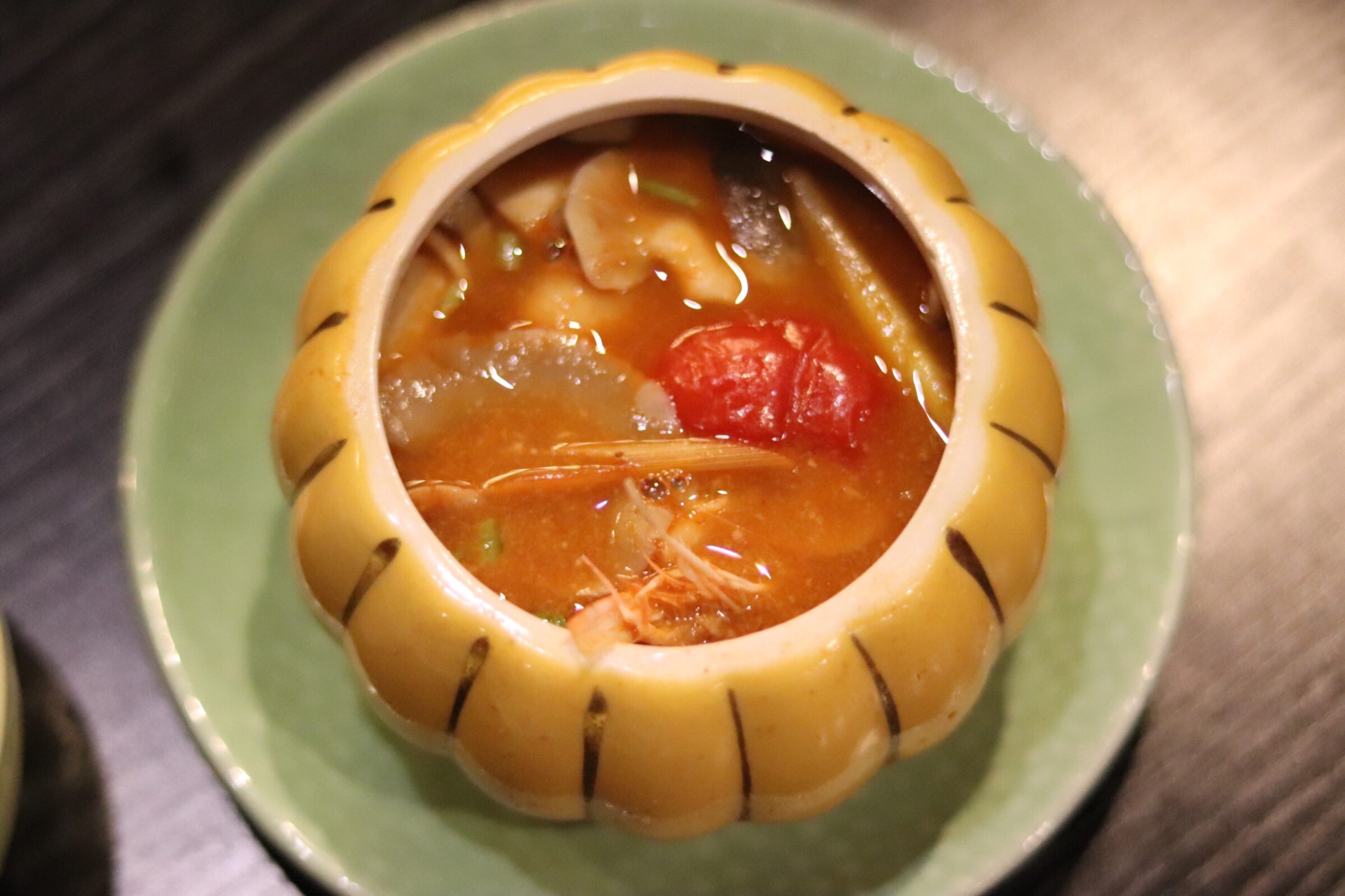 金象湾餐厅位于金榜公园附近,离brt金榜公园站很近,出站下楼梯往回走就看到了。 「马来咖喱鸡」,咖喱很浓郁味道很香,鸡肉跟咖喱搭配很完美,咖喱的味道渗入到鸡肉里面,咖喱酱汁浇到米饭上味道很可口,很下饭。 「炭烧猪颈肉」,猪颈肉肉质紧实,味道很好,炭烧锁住水分,肉不会干,蘸上调料味道更好。 「冬阴功汤」,冬阴功汤味道很好,里面配料也很足,海鲜和菇等搭配,味道有点酸酸的很可口。 「马来盏炒通菜」,青菜很好吃,味道不错,吃起来口感跟平时吃的青菜不一样。