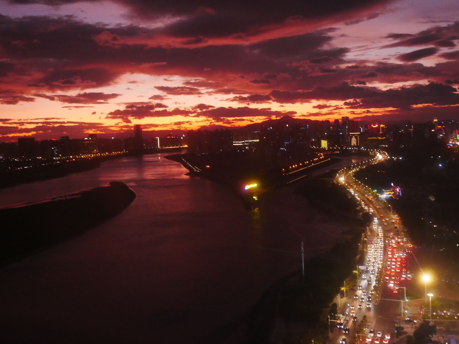 傍晚时间去的,可以拍拍晚霞和沿江公路上汽车的灯光