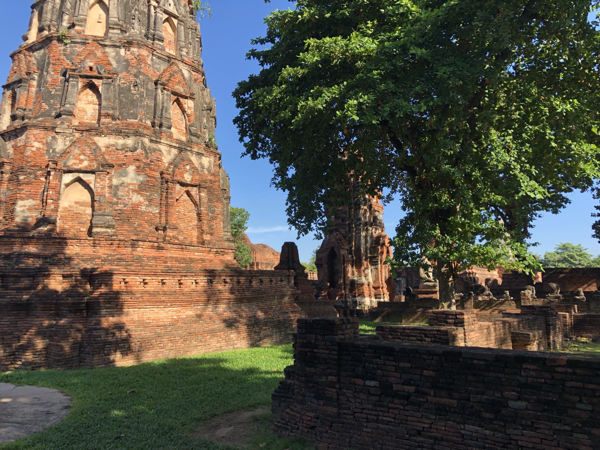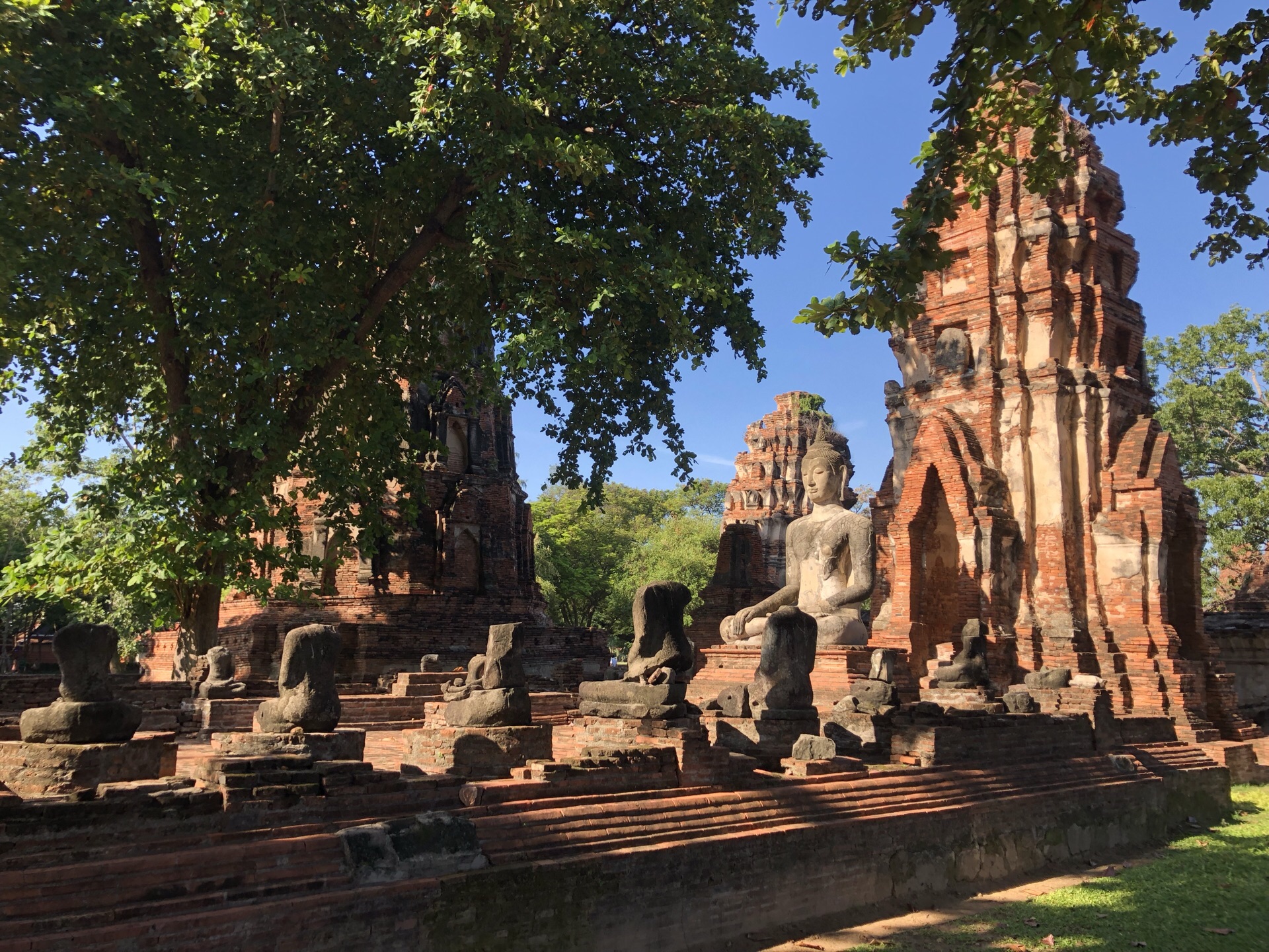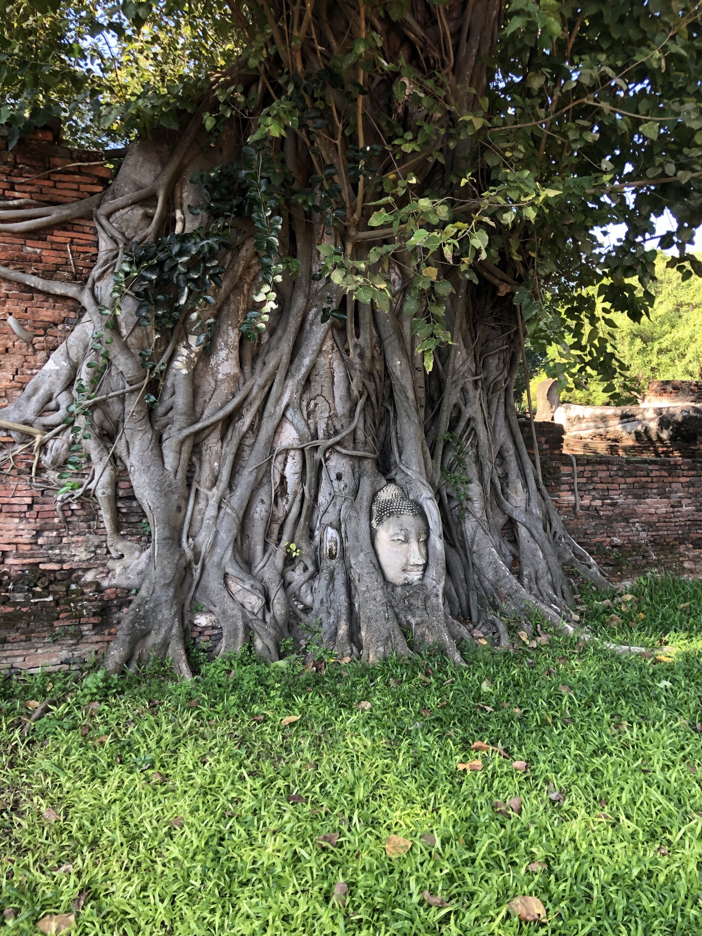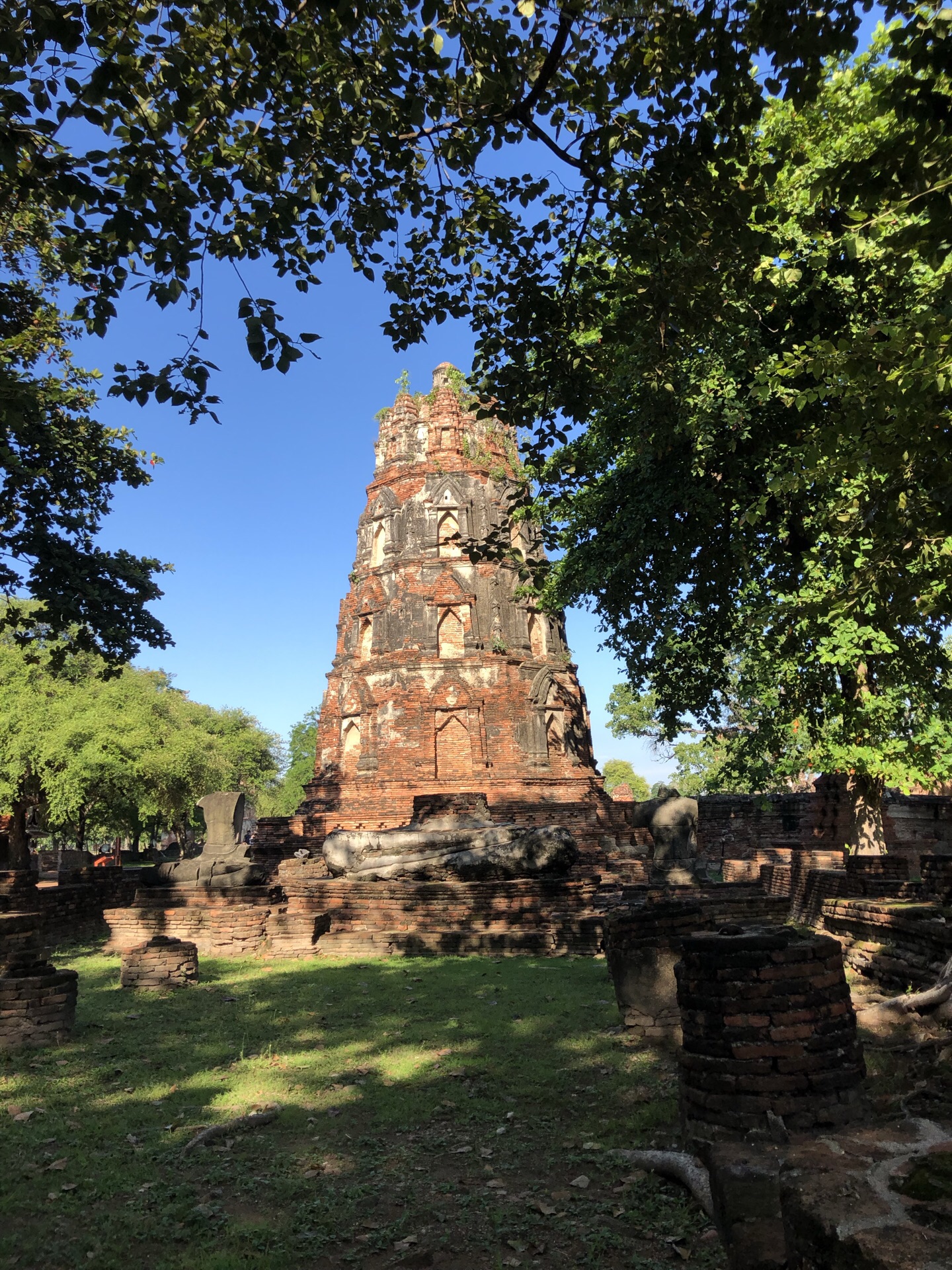 位置非常棒,就位于市中心,周围也有便利店,餐厅和小巴车站。门票50thb。最著名的莫过于被大树包裹的佛头,有很多人拍照。拍照的时候注意,不能站立,最好蹲或坐在地上,身体要低于佛头。主塔已经坍塌,不过从玛哈泰寺出土了很多文物,可以在本地及曼谷的博物馆里看到。
