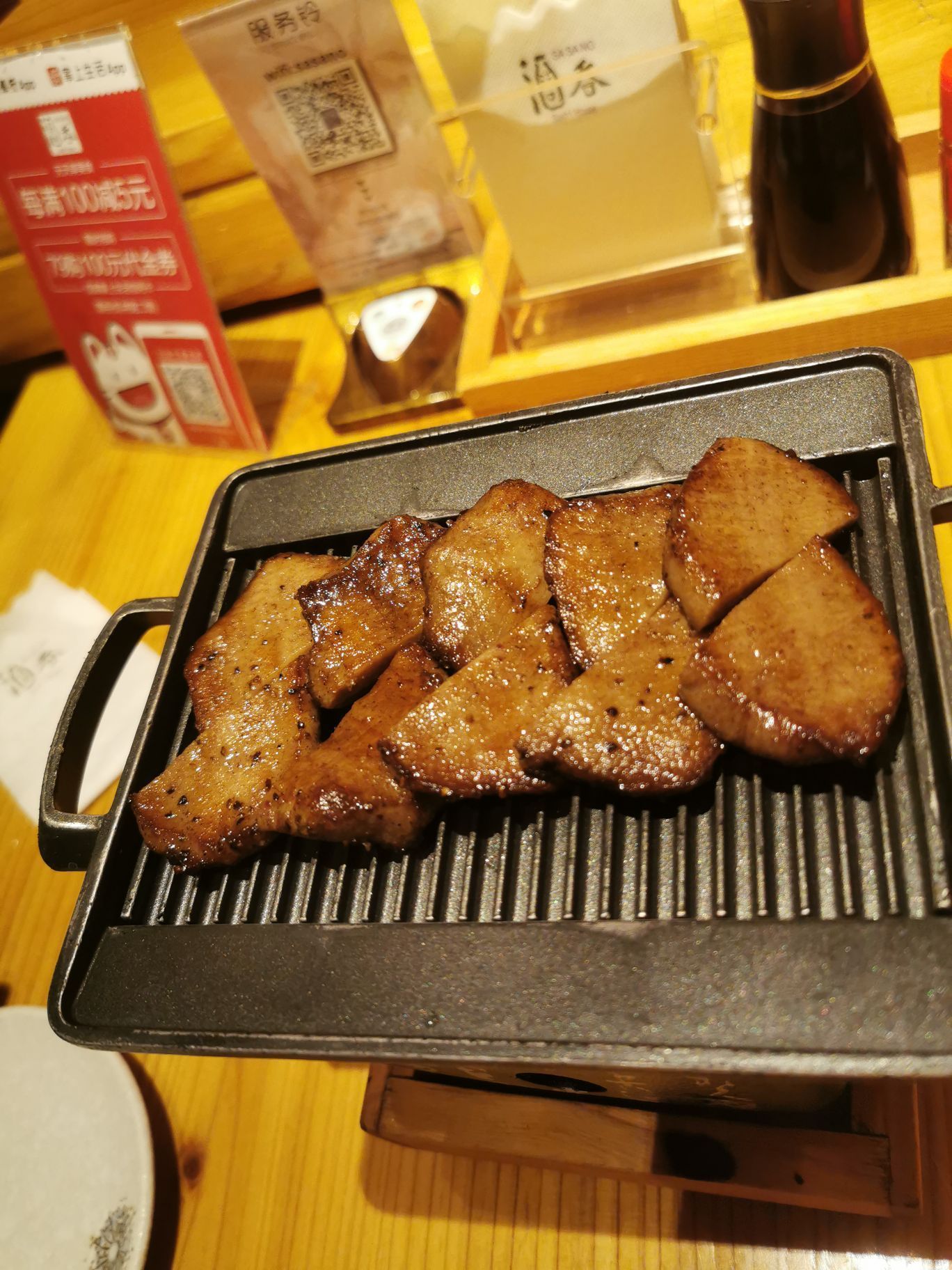 酒吞,这么多年来,它家一直品质在线,没有放题,全是自点,丰简自如。 牡丹虾,根据每天虾的个头,每天的价格不一样,非常新鲜好吃。 黑椒牛舌,牛舌很嫩,切成小块现烤,黑胡椒的香味刚刚好,推荐的。 鳗鱼饭,鳗鱼量可以,烤鳗上撒了一些芝麻,鳗鱼吃起来糯糯的,好吃停不下来。 酒吞的环境和服务,也都非常出色。