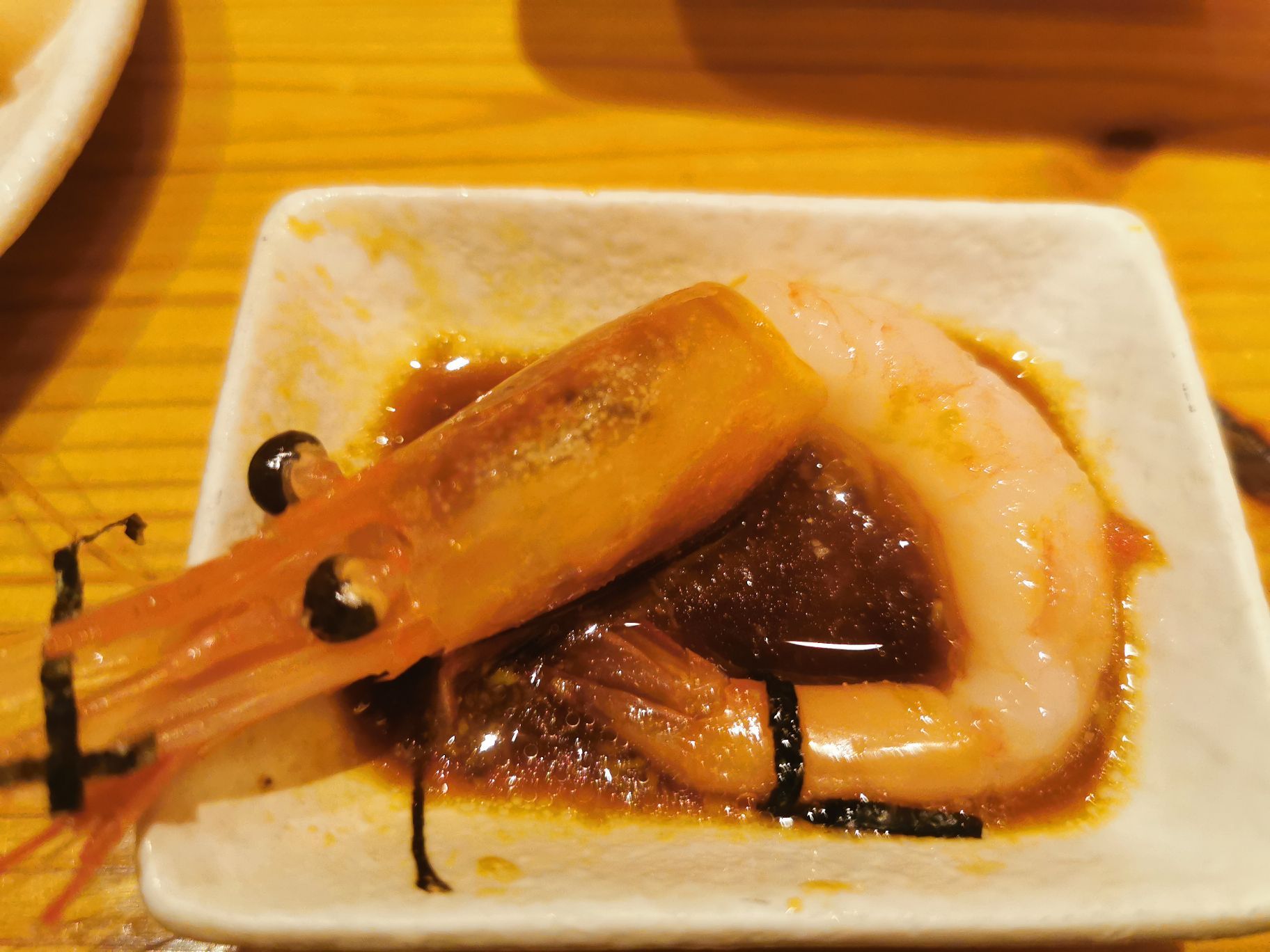 牡丹虾,根据每天虾的个头,每天的价格不一样,非常新鲜好吃。 酒吞的环境和服务,也都非常出色