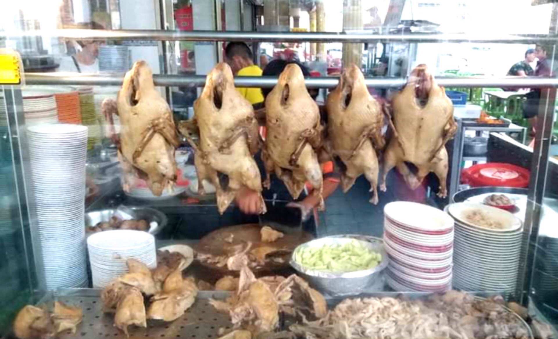 马国朋友早上接我一起吃早餐。帮我点了这里最著名的槟城虾面还有咖椰吐司。 槟城虾面汤底浓郁,加了老板的特制辣酱,提味不少,但是我觉得有点辣。这碗虾面真好吃,味道跟槟城的著名虾面相似。 咖椰吐司香脆,咖椰不是很甜。友人还点了一个薄饼与我分享。馅料都是菜,很健康的小点。 从傍晚6点开始,这里有卖卤鸭饭。据说这摊卤鸭很著名,下次来吉隆坡一定要过来吃。