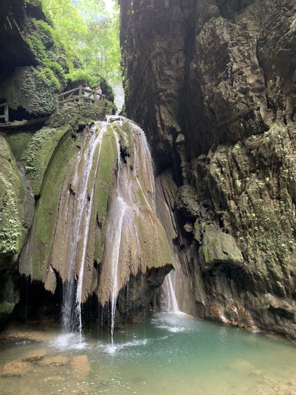 景区内游览线路只有3公里,从西门进去后就开始下山,一条河谷,沿途两边高山流水形成几个小瀑布,路...