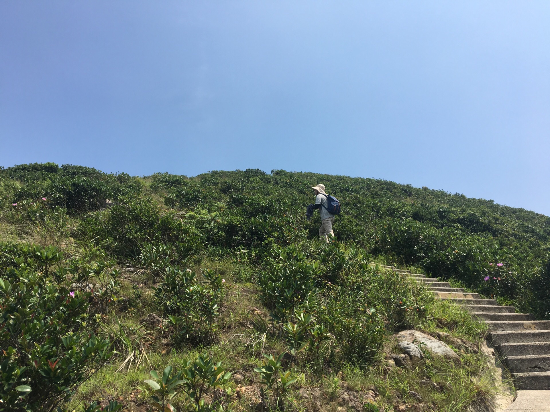 卫奕信径的一段是整个卫奕信径十段当中风景最美,但是难度也最高的一段。在中环搭6号巴士,赤柱峡道下车是卫奕信径第1段的起点,可以说刚一开始就是一个下马威,全部都是急陡的上山台阶。在台阶的半途有一个观景台,这里俯瞰赤柱半岛,是整个卫奕信径十段当中风景最美的。气喘吁吁的登上孖岗山,然后是急下,接着又是急上,征服紫罗兰山。可以说整个1段虽然距离不长,但是难度相当高。一定要视体力情况考虑是否走完全程。