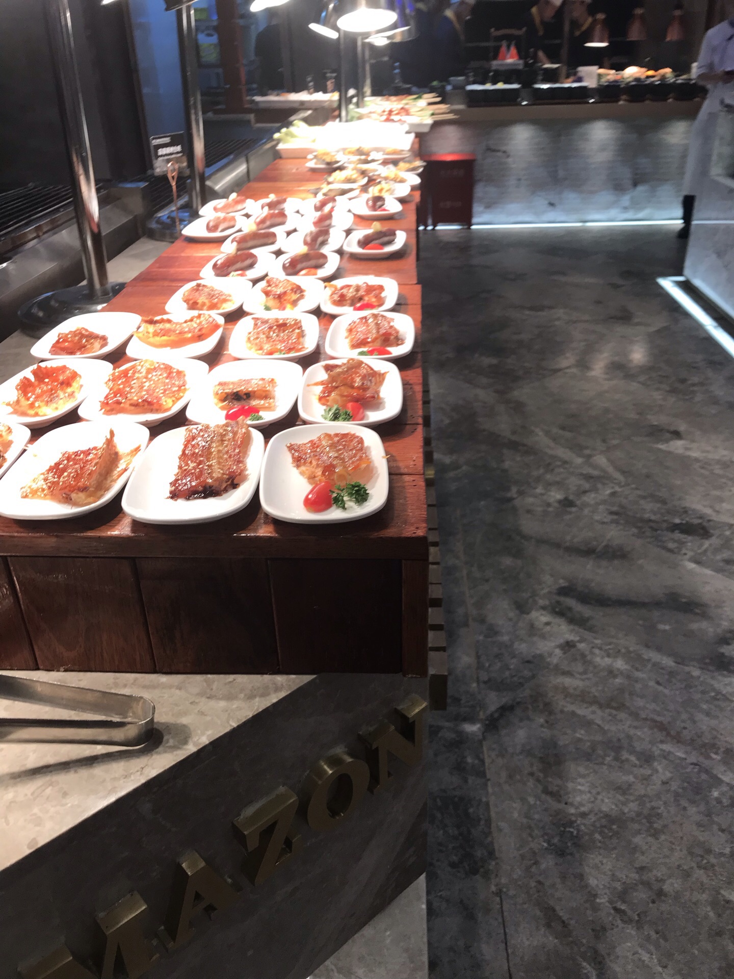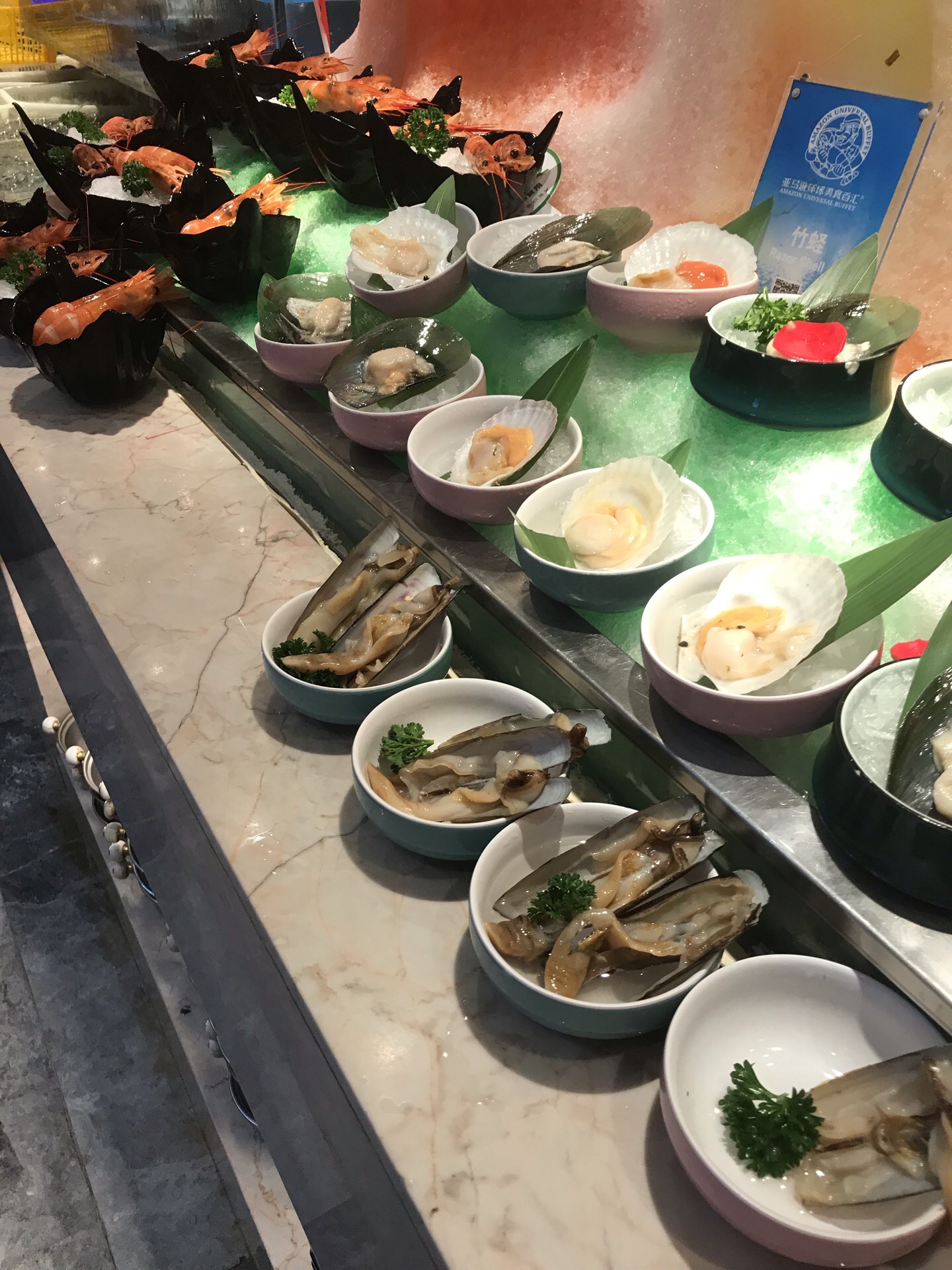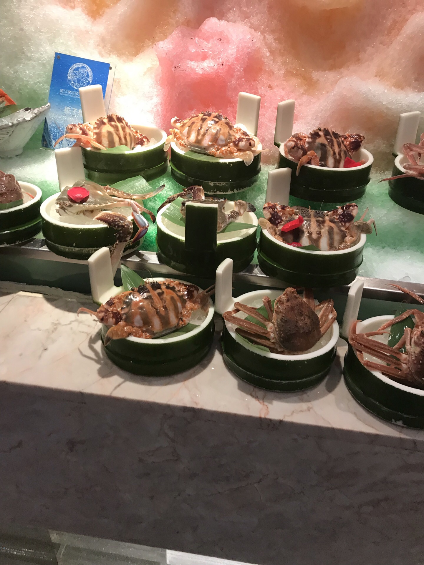 环境总体不错,海鲜自助餐品种很多,蟹的话有活的湖、海蟹,还有蒸熟的大闸蟹,日式刺身的话有三文鱼...