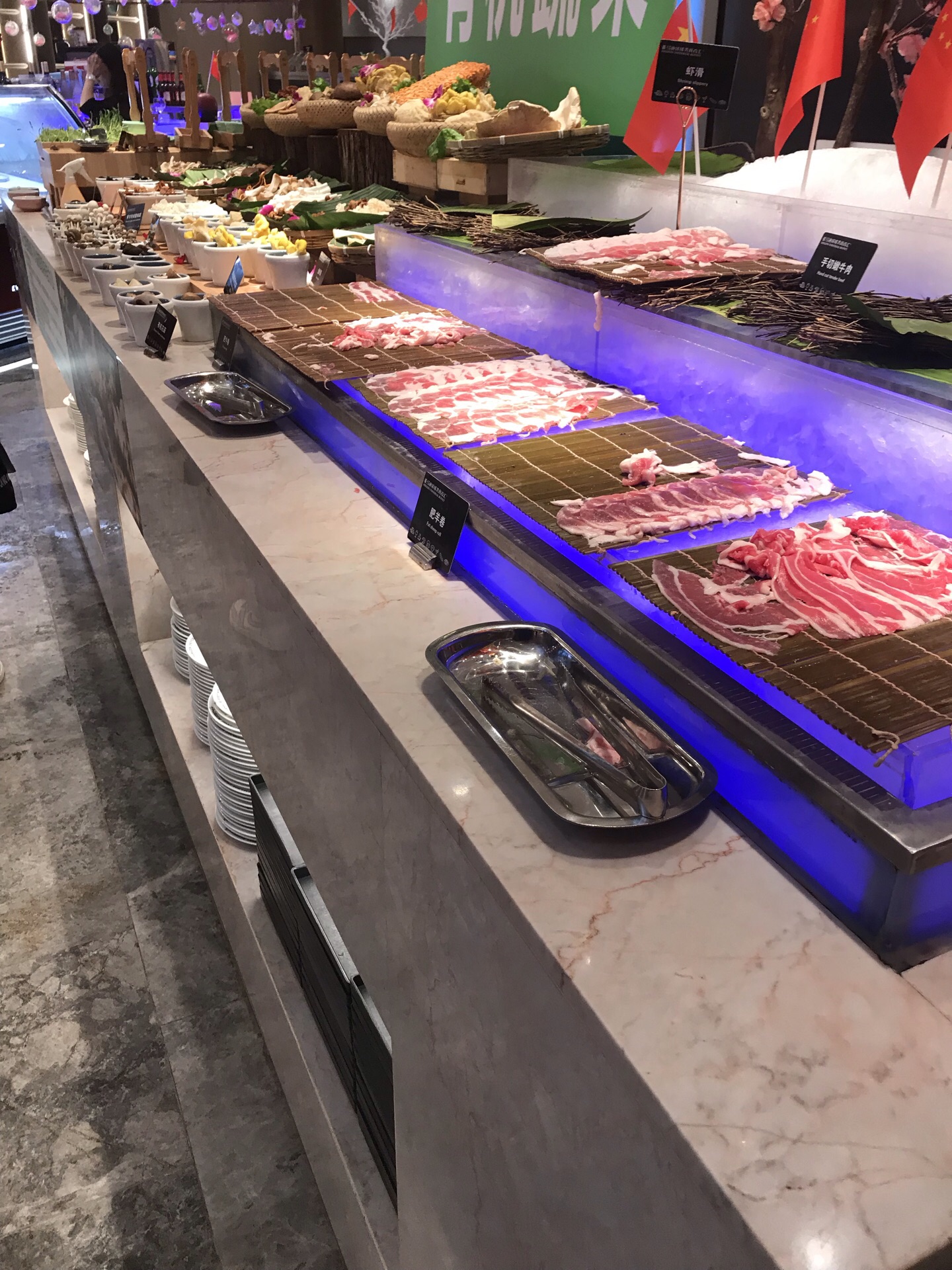 这家店是在长宁来福士的四楼,是昨天晚上去的,提前预约了,环境总体不错,海鲜自助餐品种很多,蟹的话有活的湖、海蟹,还有蒸熟的大闸蟹,日式刺身的话有三文鱼、海胆还有北极贝、蟹腿等,还看到现场切割面包蟹,可惜小青龙现在只有铁板区的芝士和蒜茸的了,海鲜这块吃下来别的都还行,就是北极贝不新鲜,味道是酸的,另外铁板区的蟹斗、鳕鱼还有烤乳猪都不错,服务这块感觉也很一般,服务员明显服务不过来,包房区一个服务员目测要管好几个包间,总体吃下来总类确实挺多,但品质有点失望,晚市300多这个价格还不如吃万岛