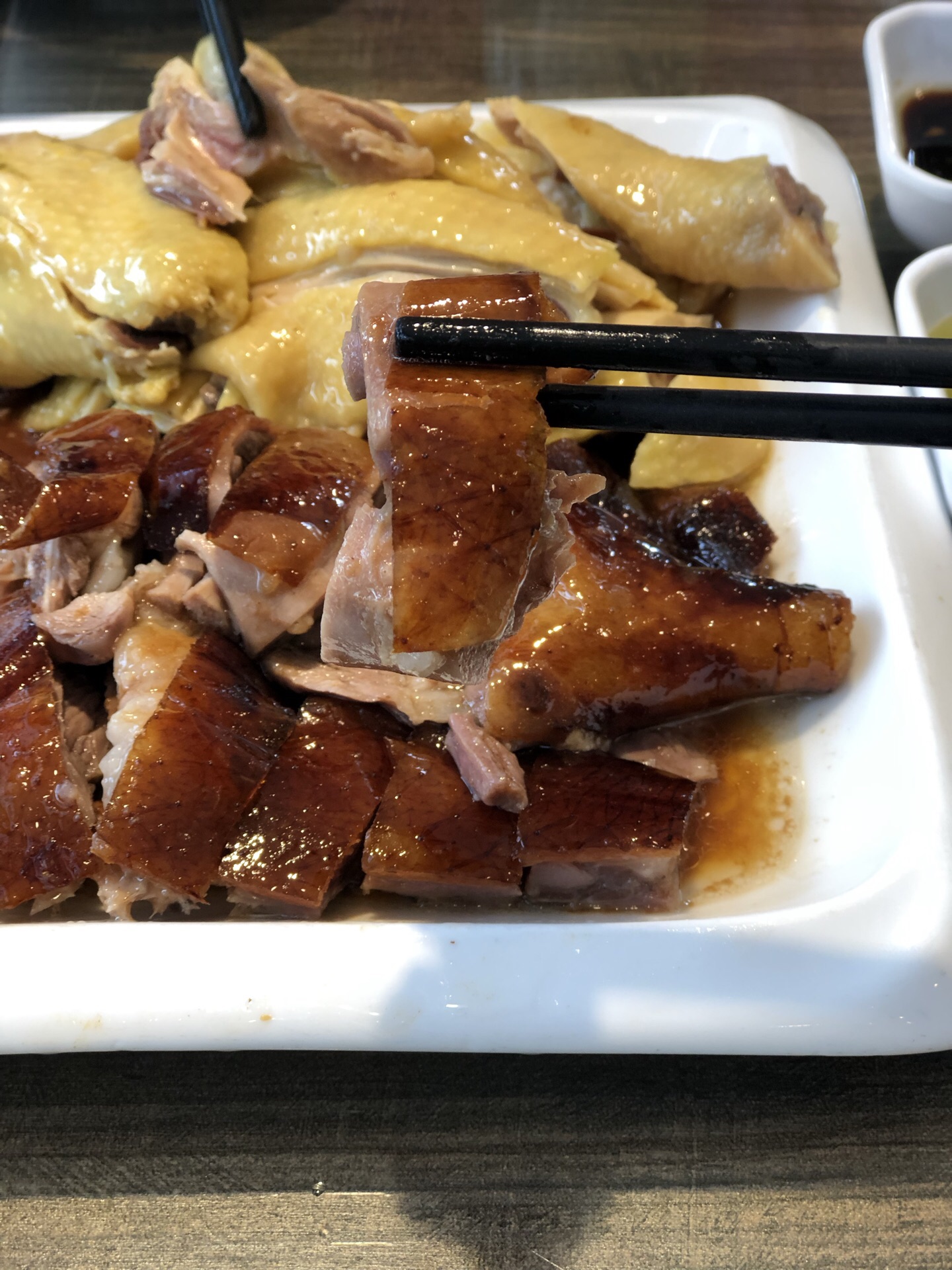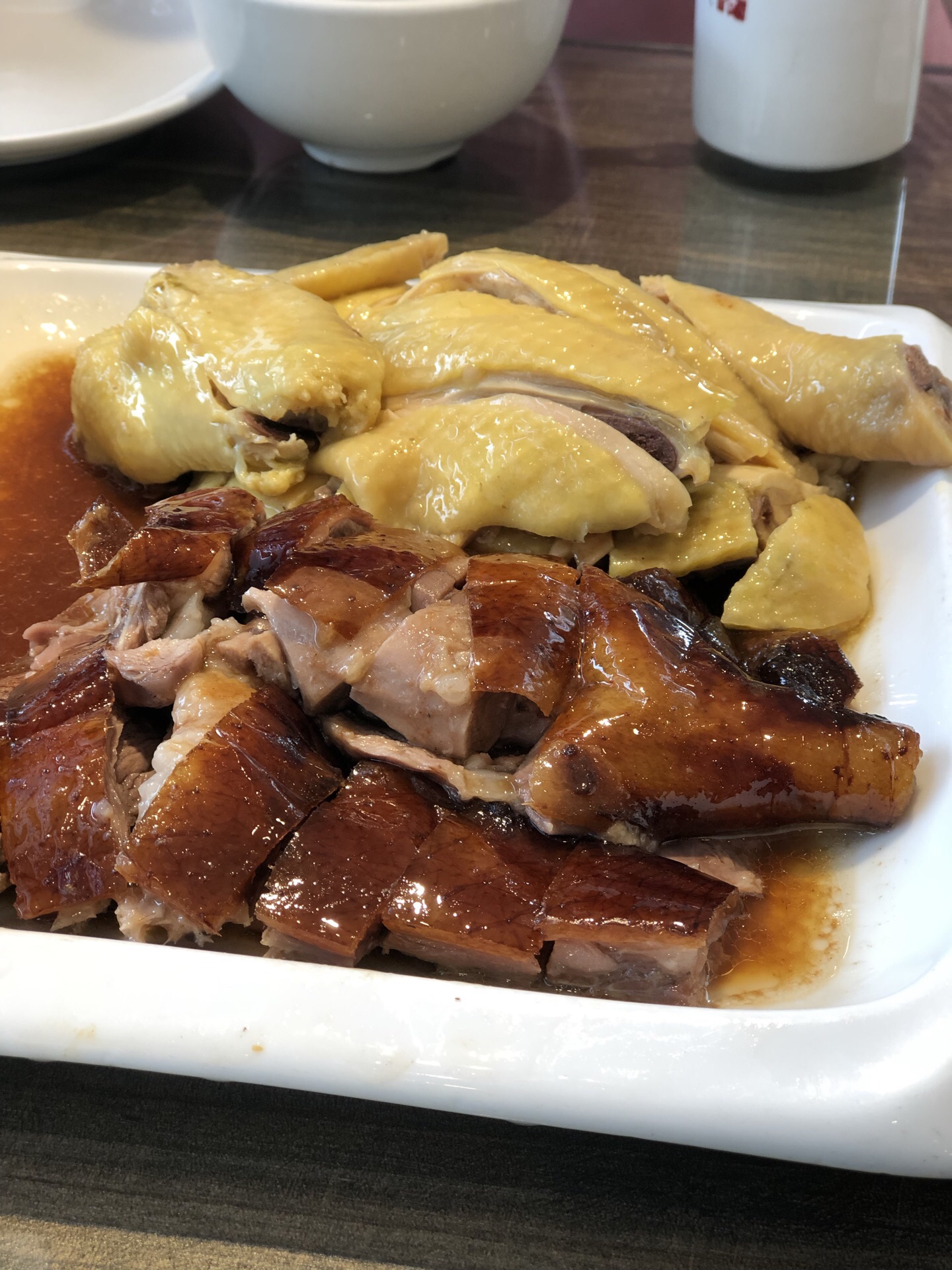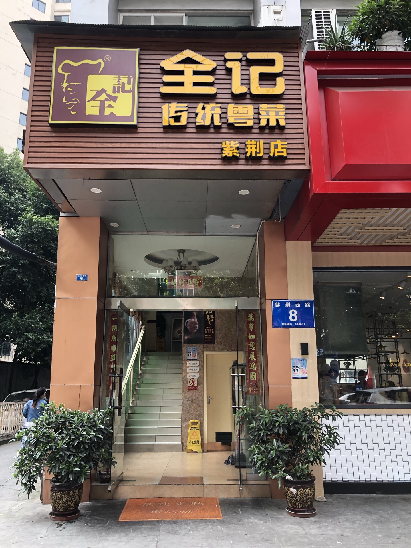 久闻全记大名,终于拔草 某人口中成都排名第一的粤菜馆 [环境] 店铺开在紫荆里,离神仙树公园不远 招牌很醒目,店在二楼,步行上楼 无电梯,中午饭点,客满,生意真的超级好 [服务] ipad点餐,上菜速度比较快 煲仔饭会现场帮忙拌匀 「烧鸭拼清远鸡」 他家的烧鹅挂在橱窗里,在灯光的照射下,看起来很诱人,烧鹅的皮很酥脆,但一定要趁热吃,不然皮冷了以后,凝聚的油脂会溢出,会觉得很腻。 烧鹅搭配了梅子酱,但是!梅子酱有点稀,酱汁不能充分的挂在烧鹅上。 清远鸡,鸡肉的肉质比较紧实,搭配葱油酱,我个人是喜欢的,不会油腻,比较清爽 「咸鱼五花肉煲仔饭」 点这道菜的时候,某人真的是认真的吗…… 咸鱼,盖盖吃不惯,真的很咸,尤其是和煲仔饭搭配起来更加突出咸…… 如果没吃过咸鱼的人真的慎点 煲仔饭本身锅巴很香,很脆,盖盖是喜欢的 西兰花,比较清爽,搭配酱汁盐味刚刚好 两人消费180多,性价比还是比较高