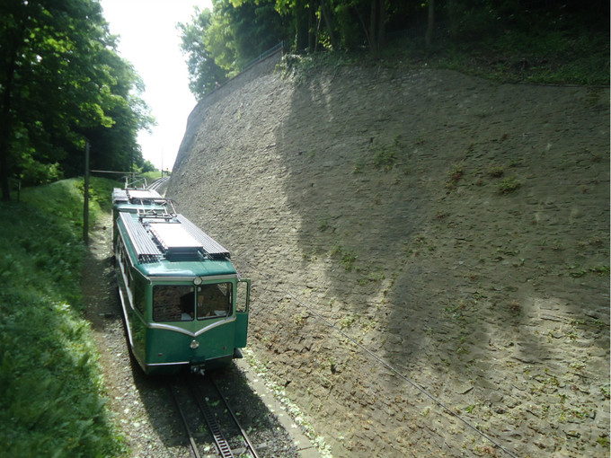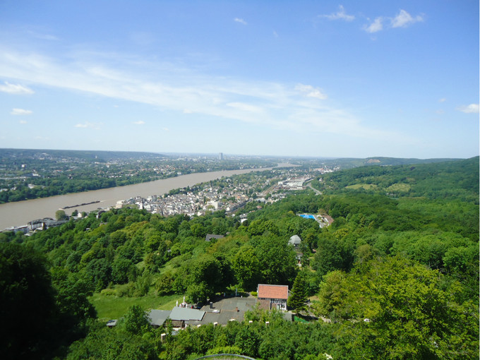 在一座小山上,从火车站下来走走就到了山脚下。上山有四种途径,一是坐小火车,二是骑小毛驴,三是坐马车,最后一种就是经济实惠的步行。为了锻炼身体,我们选择爬起了小山。 德国 好不容易遇到了一个大晴天,所以来爬山的 德国 人特别多,一家三口还带着狗,向往呀 爬到半山腰我们发现选择走路上山是最正确的啦,可以俯瞰整个小城。