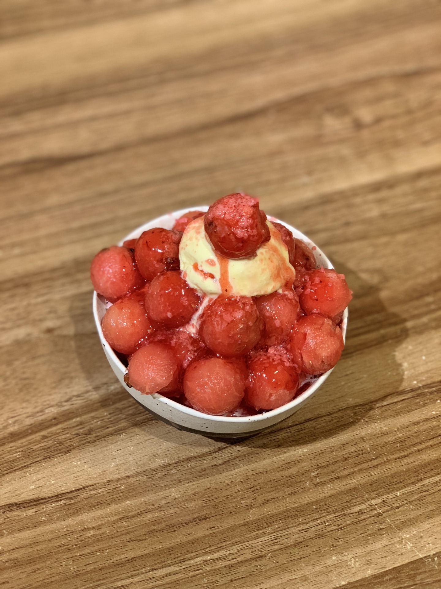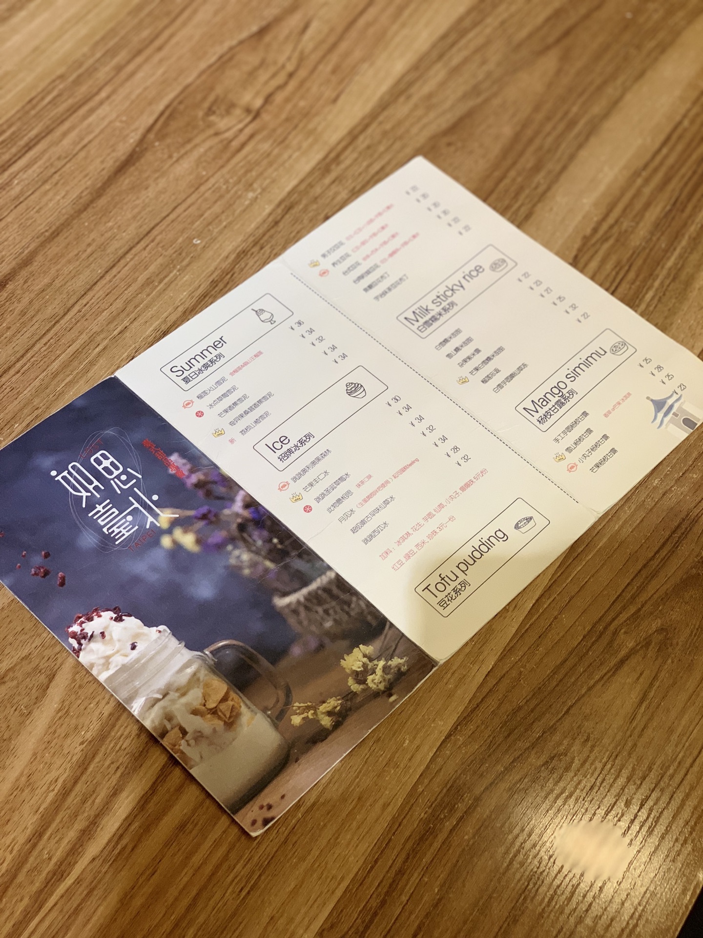 [环境]小店的位置在玉林西路这边,周边的小巷很多。所以各种充满别样风格的店铺比比皆是。这家店也就在其中,装修很简单,不过台湾的元素很多,不管是海报还是菜单、地图或者其他的一些小玩偶,细节上还是很到位的哦! 「跳跳西瓜冰」今日最佳的味道,很久没有吃跳跳糖了,感觉到了小时候的韵味哦!西瓜也很不错,圆圆的,甜甜的,一口下去在口中翻滚~~~ 「榴莲火山雪泥」虽然是招牌主打的,卖相来说就很一般了,榴莲的味道不错,整体上的口感还行吧,离期望值还有点距离的啦! 「男子汉豆花」名字听起来很不错,但是芋圆很一般,很多都连在一起了,一看就是冰箱里放太久了。