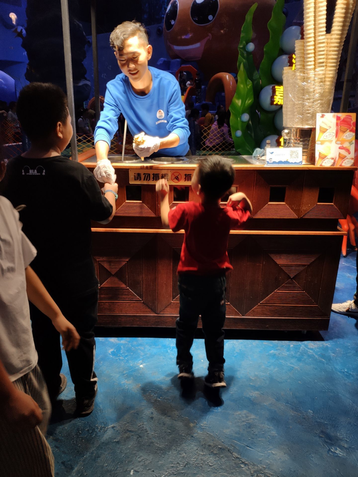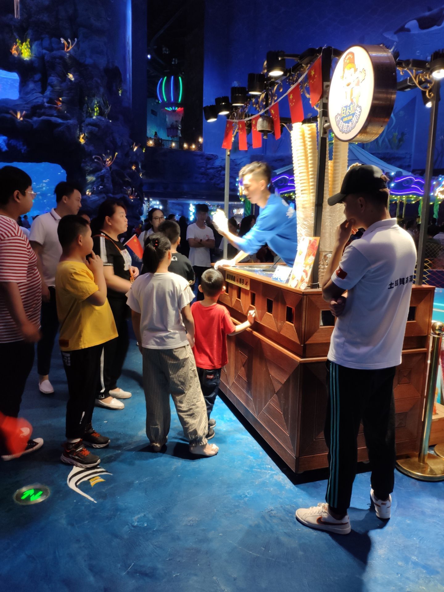 国庆来无锡融创海世界玩,说实话人很多,每个项目都要排队一小时以上,剧场演出不提前排队根本进不去,唯一不用卡时间的就是白鲸了,海洋球池很大,适合带小朋友来玩,可以玩一整天,有网红土耳其冰淇淋跟吹糖人,可以让小朋友玩玩,价格不贵,毛绒玩具挺可爱的,买了几个给小朋友玩,还有八五折优惠券