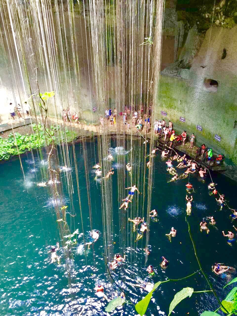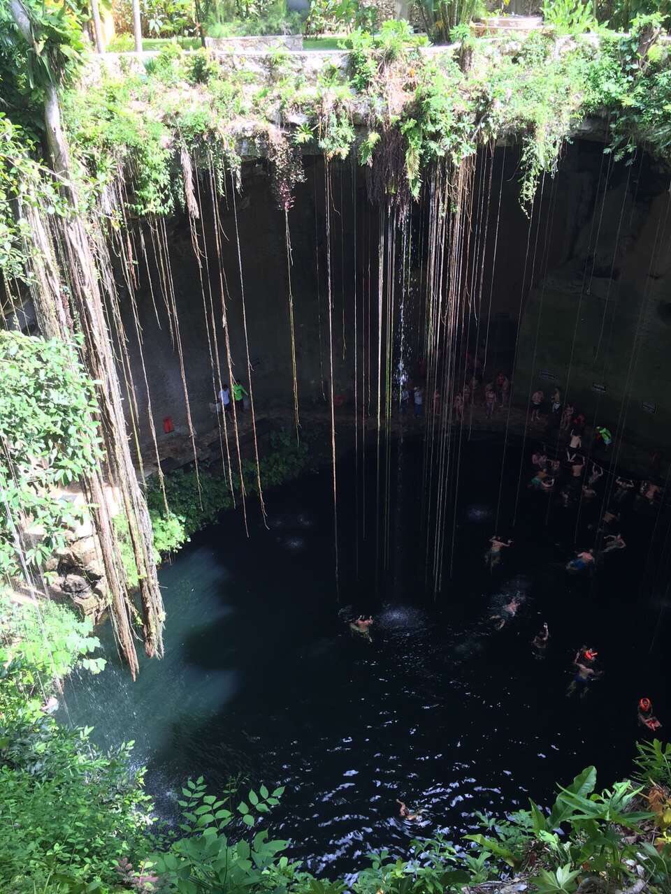 卡卡(Kiki)瓦米尔帕溶洞,与我国通常的溶洞不同,它不是一个山洞,而是一个天坑,一个硕大的天坑,现在是一个天然的水池,一个比普通水温更低的水池,而老外们在此玩得不亦乐乎,跳水游泳,他们厚厚的脂肪层耐寒性似乎比我们强得多。