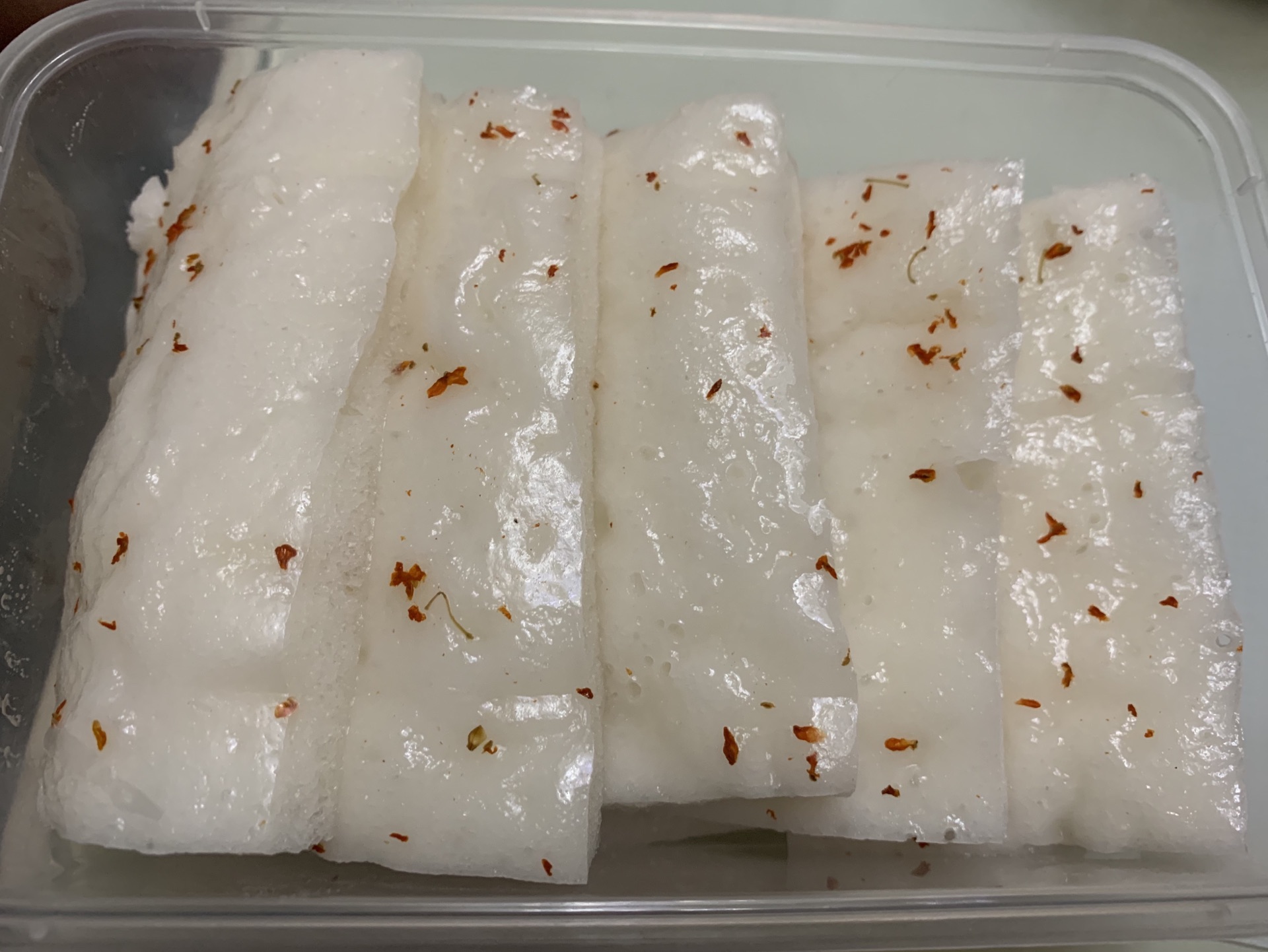 前端期间糕点制品一下子红遍上海滩,形形色色的糯米,大米类糕点,各个品牌层出不穷。我没在那段时间去凑热闹,最近好像热度降低了。今天路过这家潘甬兴,想起之前美食节目介绍过他家的酒酿饼,于是买一盒试试。 介绍说他家的酒酿饼是金桂花做的,我本身就喜欢桂花香及桂花制作的美食,所以是抱有一些期望的,可是吃的时候略有失望,酸味盖过了甜味,不是我喜欢的味道,15元一盒浪费了[难过]嚼劲倒还是有的。