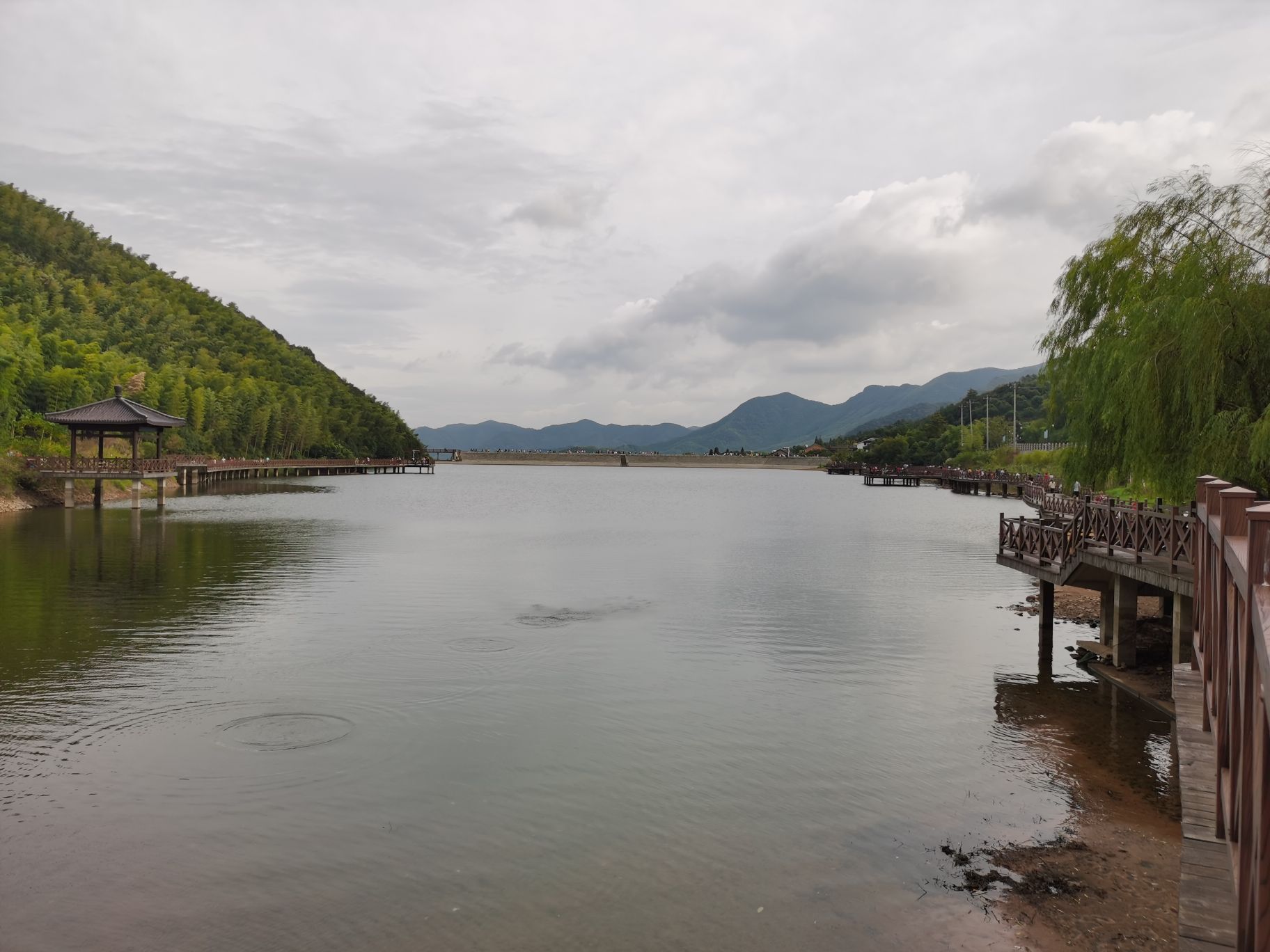 爬上堤岸风很大,沿着水库走一圈大概20分钟左右,周边都是农家乐,很热闹,我住的农家乐后面还有条...有个小水库,国庆期间都是人,爬上堤岸风很大,沿着水库走一圈大概20分钟左右,周边都是农家乐,很热闹,我住的农家乐后面还有条小溪,带了个网兜捞捞鱼很有意思,话说国庆期间晚上的月亮很漂亮