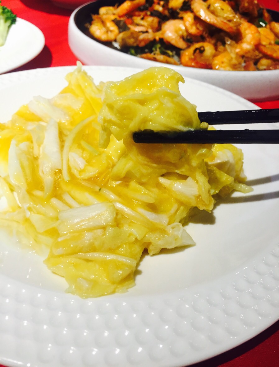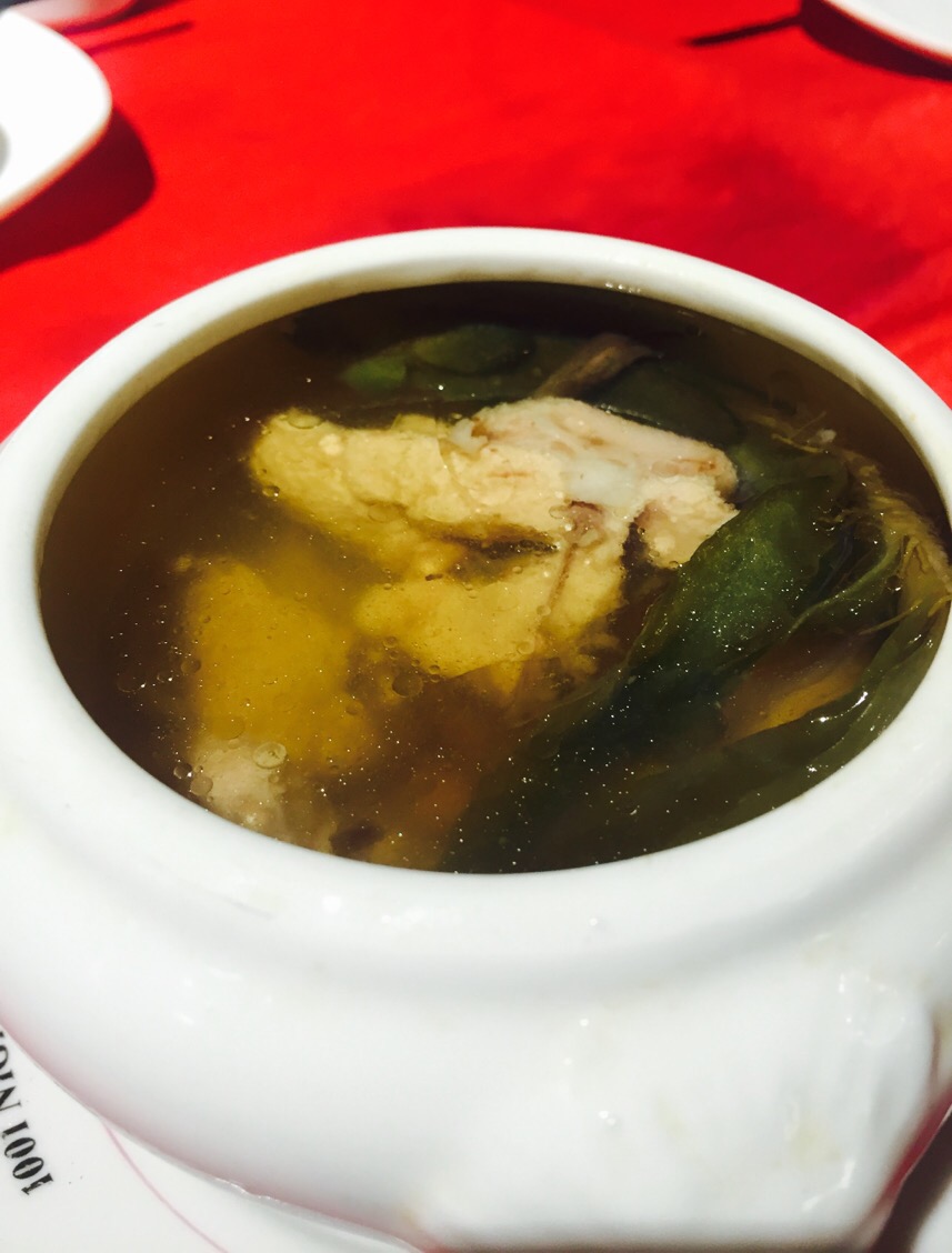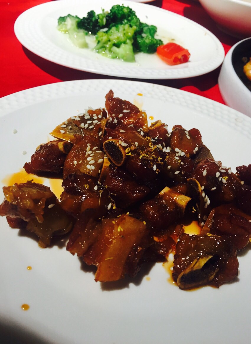 在越秀公园附近逛逛,到了时间吃饭,想吃粤菜便来这里了。 看了看菜谱随意点了几款小炒,桂花焗骨的份量不是很多,但肉很香口还脆脆的。姜花炒蛋有种半熟的流心状态,很好下饭。蒜蓉炒西兰花也好吃。 最后来一个汤水,霸王花炖猪腱,喜欢饭后喝汤,一盅好大份,喝完好饱。 店里的装修有些怀旧,红色地毯,天花板上挂着好多吊灯。