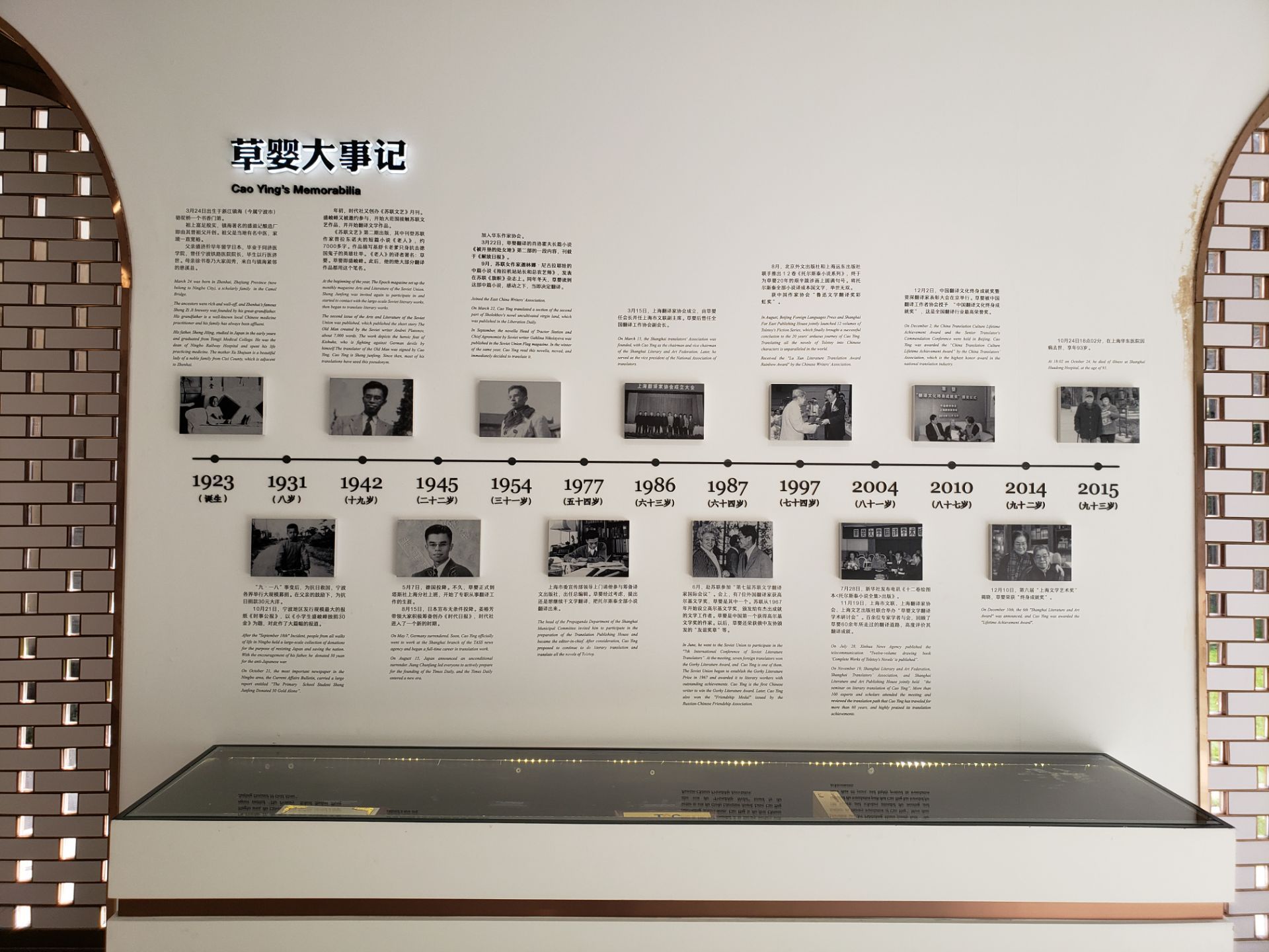 草婴是我国第一位翻译肖洛霍夫作品的翻译家,他还曾翻译过莱蒙托夫、卡塔耶夫、尼古拉耶娃等人的作品,在中国读者中产生极大的社会反响。后来草婴以一人之力完成了《托尔斯泰小说全集》的翻译工作,这一壮举在全世界都是独一无二的。草婴是先生的笔名,他说小草是渺小的,很容易被人践踏,也很容易被火烧掉。但是春风一吹,又会重新恢复生命力。“婴”是比草更小,草的婴儿。我觉得我们应有这样的精神,尽管我是很普通、很渺小的人,但我很坚强,不会屈服于任何压力。只有一楼可以参观。