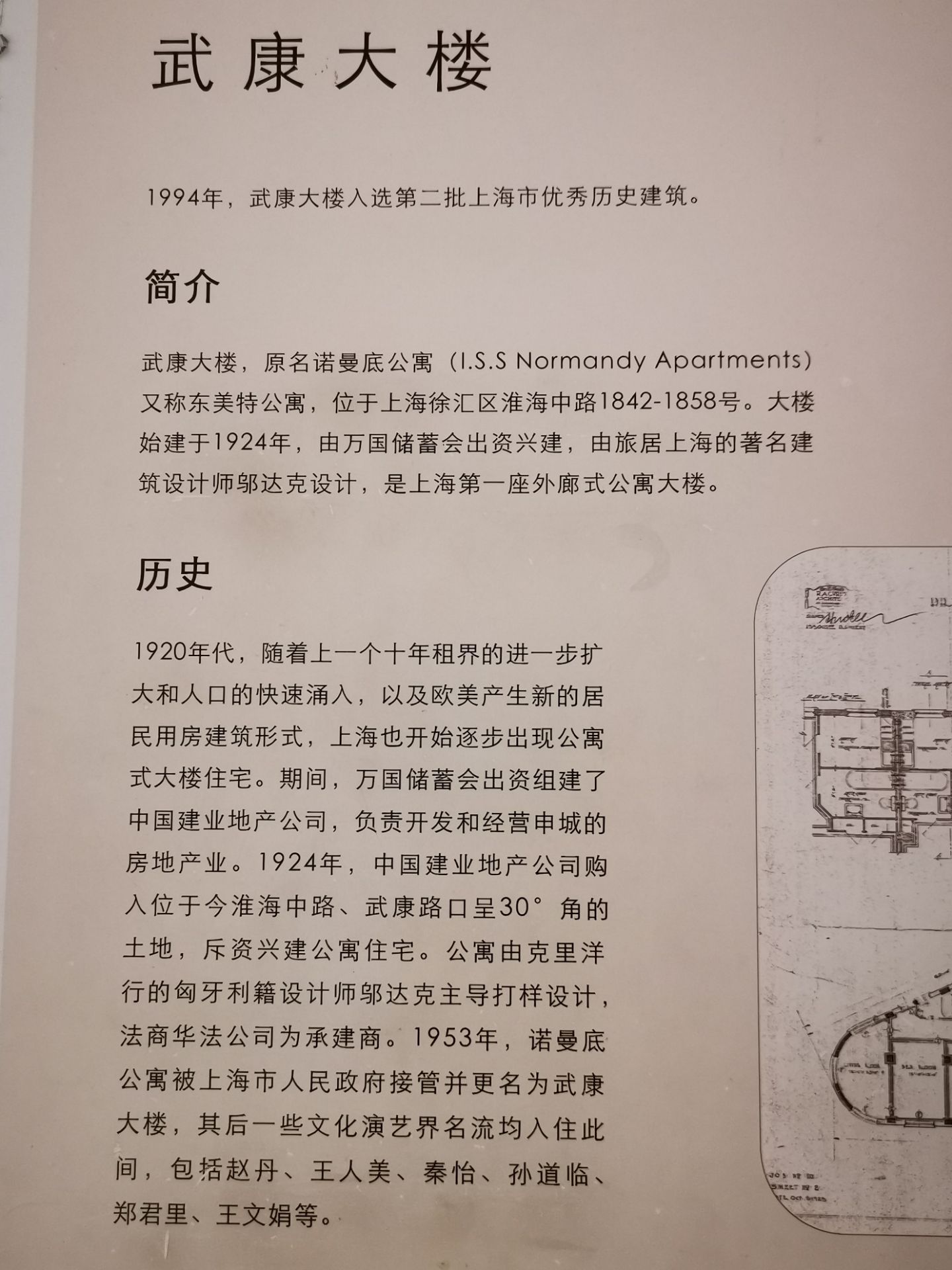 武康大楼建于1924年,著名建筑大师邬达克设计,是上海第一座外廊式公寓,也是目前世界仅存的三栋船型建筑之一,武康大楼为八层钢筋混凝土结构,是上海最早的外廊式公寓建筑之一。1994年入选上海市第二批优秀历史建筑。著名电影艺术家郑君里、赵丹曾在此居住。