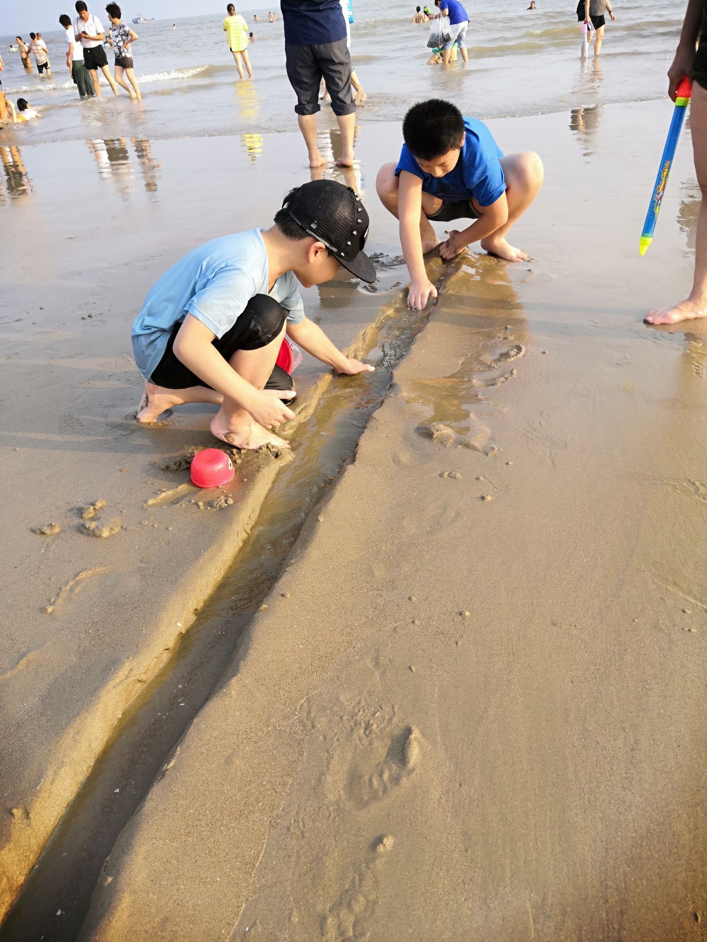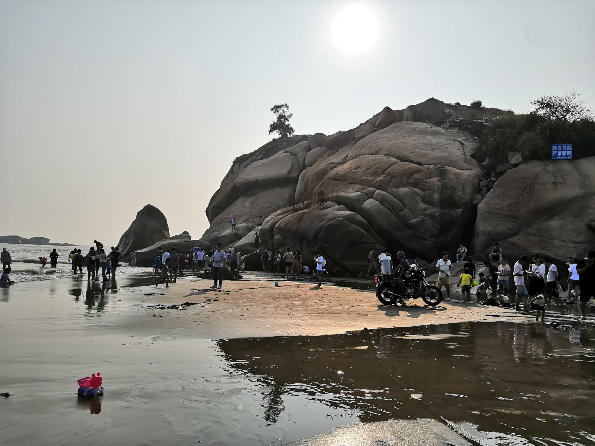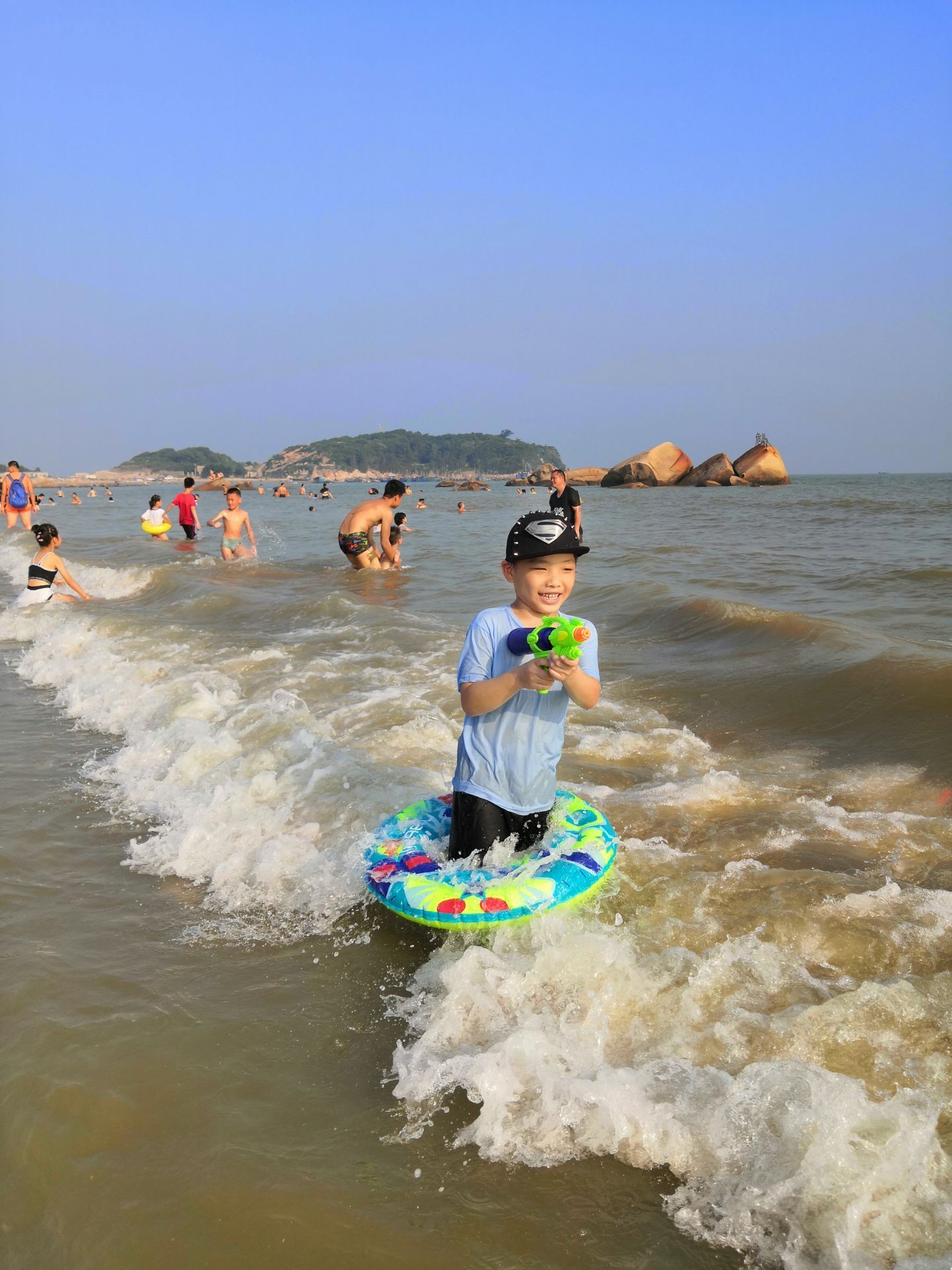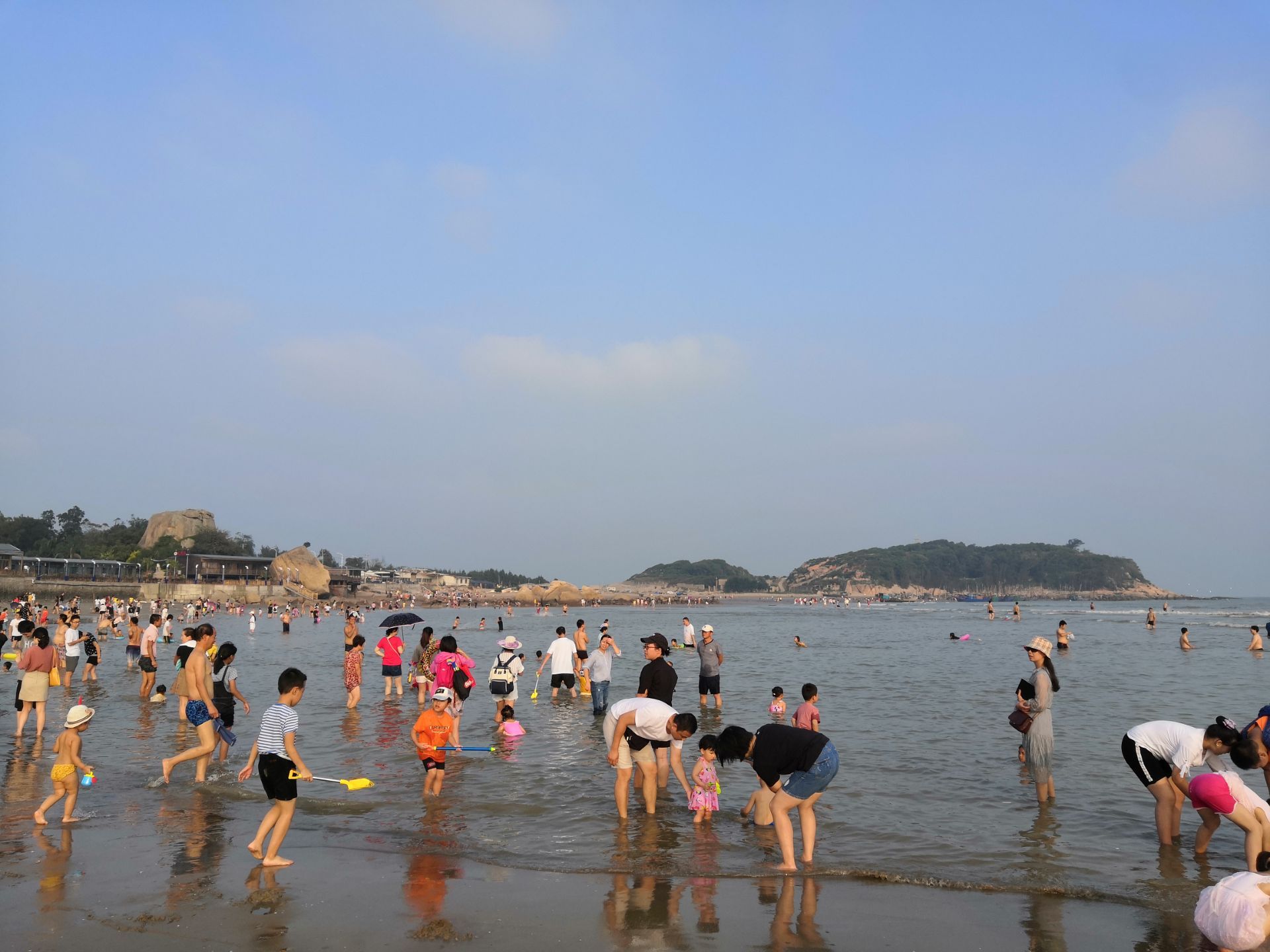 高德导航结束至漳港沙滩后,再往前开,有两个好大的停车场哦,千万别在路边停车,车道太小,交汇时很容易刮擦到。囯庆时已是入秋了,但福州的天气还是好热的,所以沙滩上人好多呀。一堆堆的小朋友围在一起,带上沙滩玩具,好不热闹呀。入秋了天气特别的舒服哦,孩子玩了两个多小时,虽是午后,但海风吹在脸上格外舒服。在沙滩上还有卖小吃的,骑马的……有点乱哦,希望有关部门能保护好这片海滩。