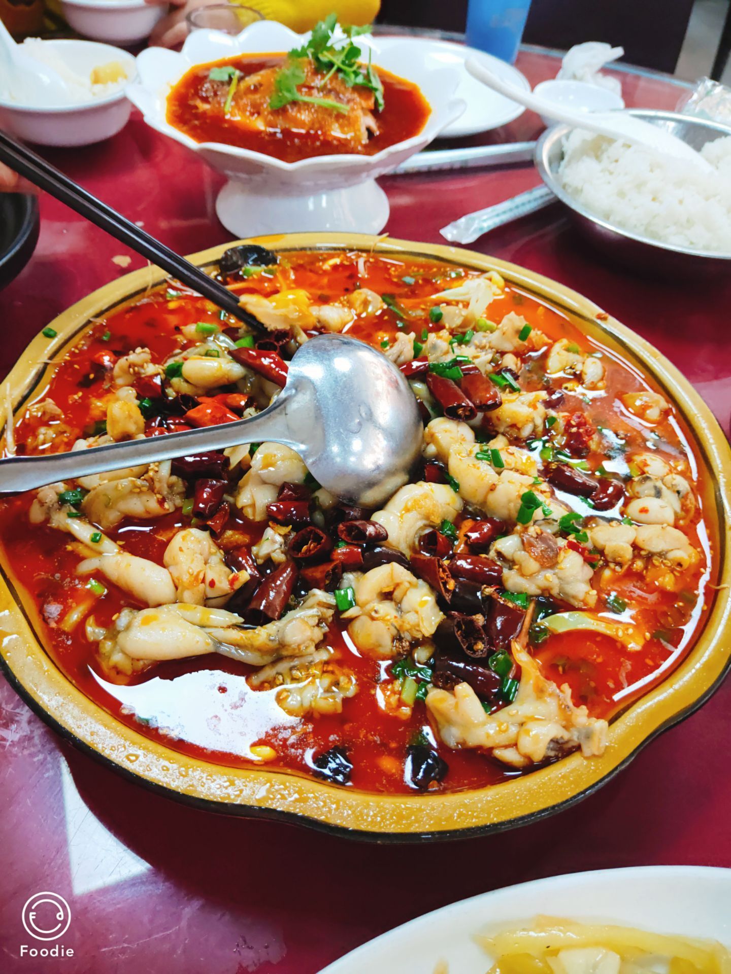 蜀都这家开在桂坛巷的老字号川菜馆,号称五中学子的小食堂, 【环境】巷子里的二层小楼,二楼有包厢,装修一般,但是还算挺宽敞。 【口味】蒜泥白肉现在好像只有他们家和蜀园有做,端上来就能让你流口水,薄薄的一片卷起香莱店满红油蒜泥,再放进嘴里,微甜微香微麻微辣,好吃的不要不要的。泡椒田鸡,水煮鱼都是他家招牌,日本豆腐煲也是,土豆丝也是,糖醋里脊也是,总之招牌菜特别多,价格也实惠,一般人均就40块左右,今天的点田鸡特别肥美。