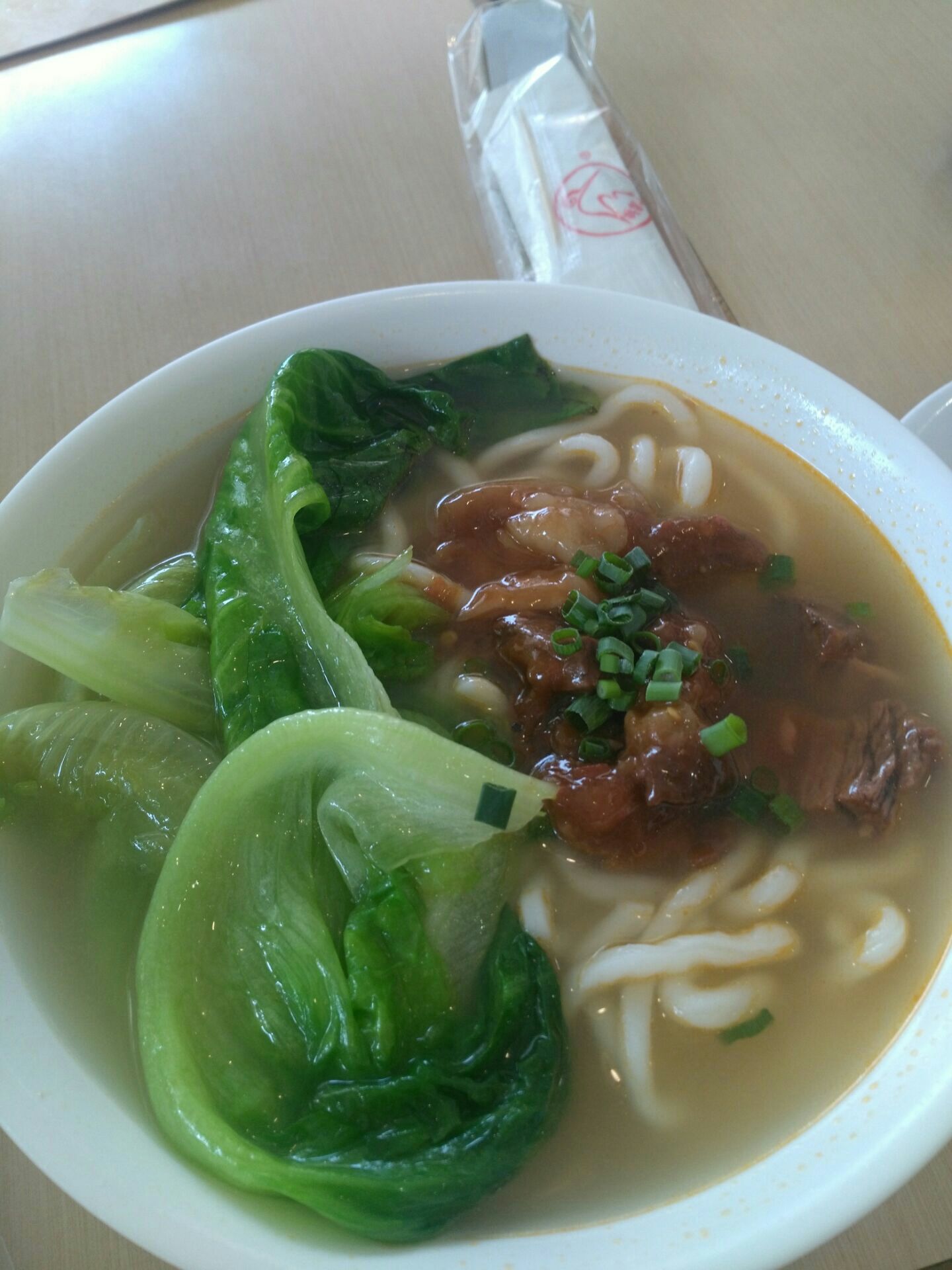 鹤留山花园店(四) 这次试试鹤留山的面,点了一份牛白腩乌冬面(见图一),18元。牛腩挺好吃的,配的生菜也挺嫩哒,总体来说还行。煎蛋,5元,自己加酱油(见图二)。鸡中翼(3个一份,已经吃了一个嘻嘻),15元,配上番茄酱,吃得挺香的(见图三)。