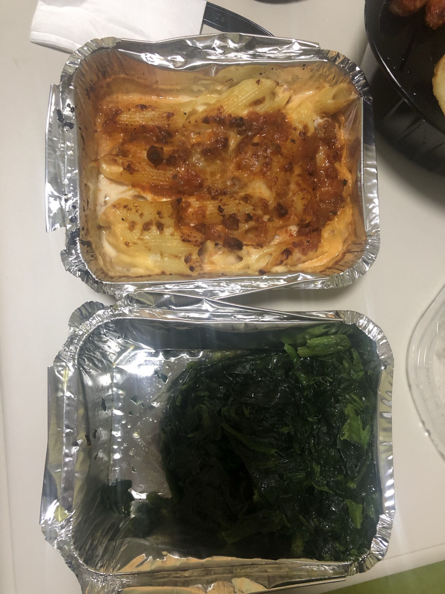 外卖点的这家,性价比一直很高。 肉酱通心面,酱汁浓郁,蕃茄和奶香都很浓。 金枪鱼蛋黄酱披萨,很经典的口味,金枪鱼厚厚一层,蛋黄酱也很浓郁。就是饼底厚了点。 香辣烤肠,小辣,但用料不错,量也足。 烤菠菜,很健康的一道菜。 送的慢了点,包装可以。