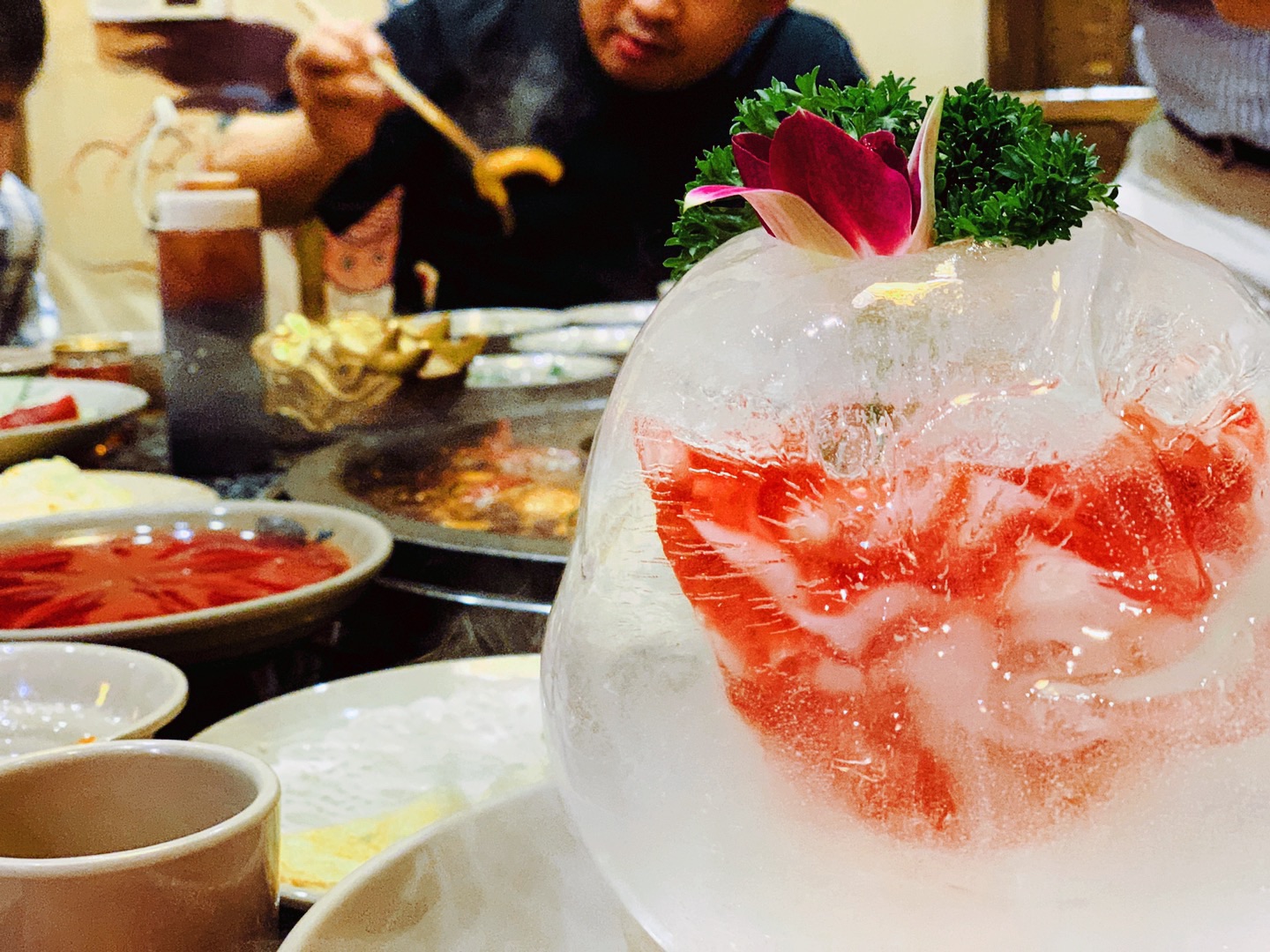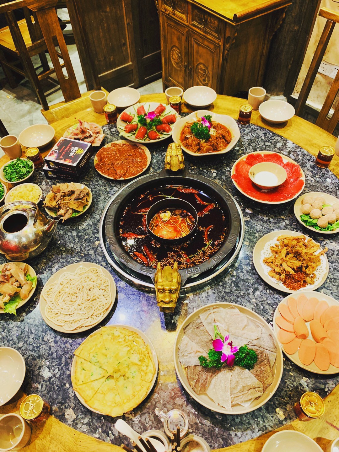 落地四川,火锅式的接风洗尘简直不要太霸气。火锅前还要每人一碗红酒润润喉