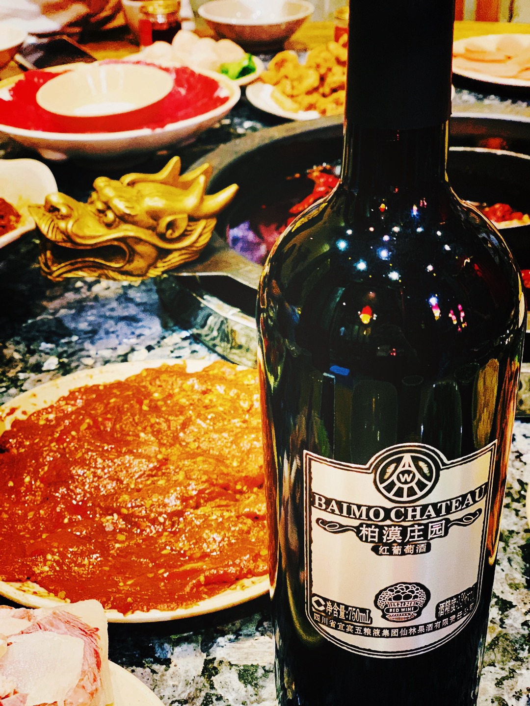 没想到啊没想到!毫不夸张的说,一落地宜宾,空气分子都是酒糟味儿! 落地四川,火锅式的接风洗尘简直不要太霸气。火锅前还要每人一碗红酒润润喉。 毛肚百叶鸭血鹅肠,花千骨柔中带辣,扫完一圈,辣得一个通透,甚似打了一场太极
