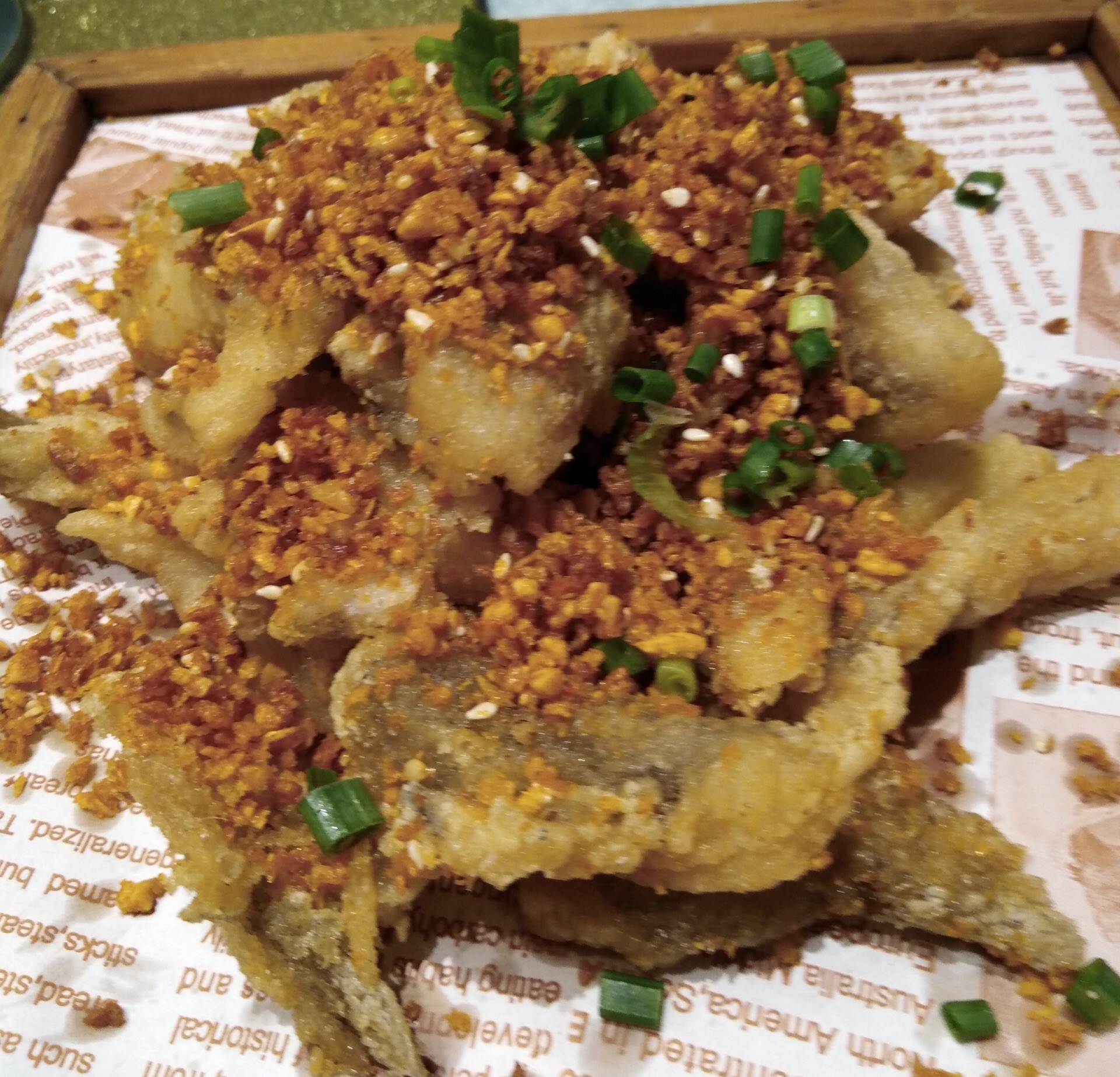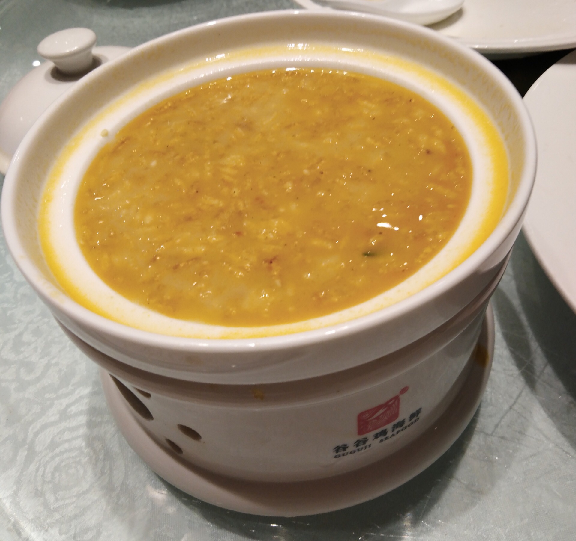 谷谷鸡象山海鲜店国庆期间晚上吃饭还要翻桌子,我们被安排在第二轮,7点多才开始开吃,点了他们家的必点菜椒盐龙头烤,感觉炸的不是很脆,手拆蟹粉蹄筋不错,很鲜,蹄筋有嚼劲,不错,虾汤泡饭特别好吃,米粒都是一粒一粒的,吃的出虾的鲜香味,推荐一个。