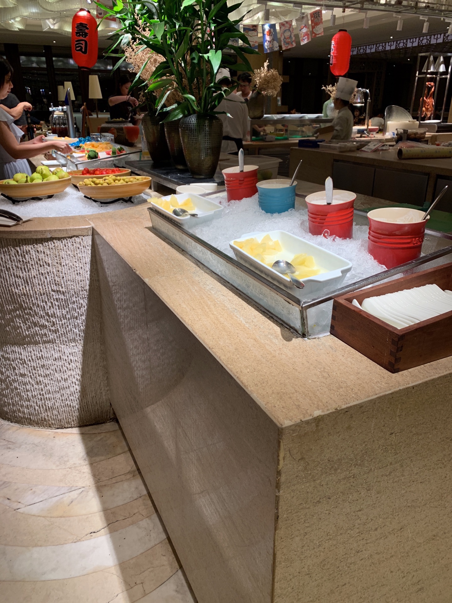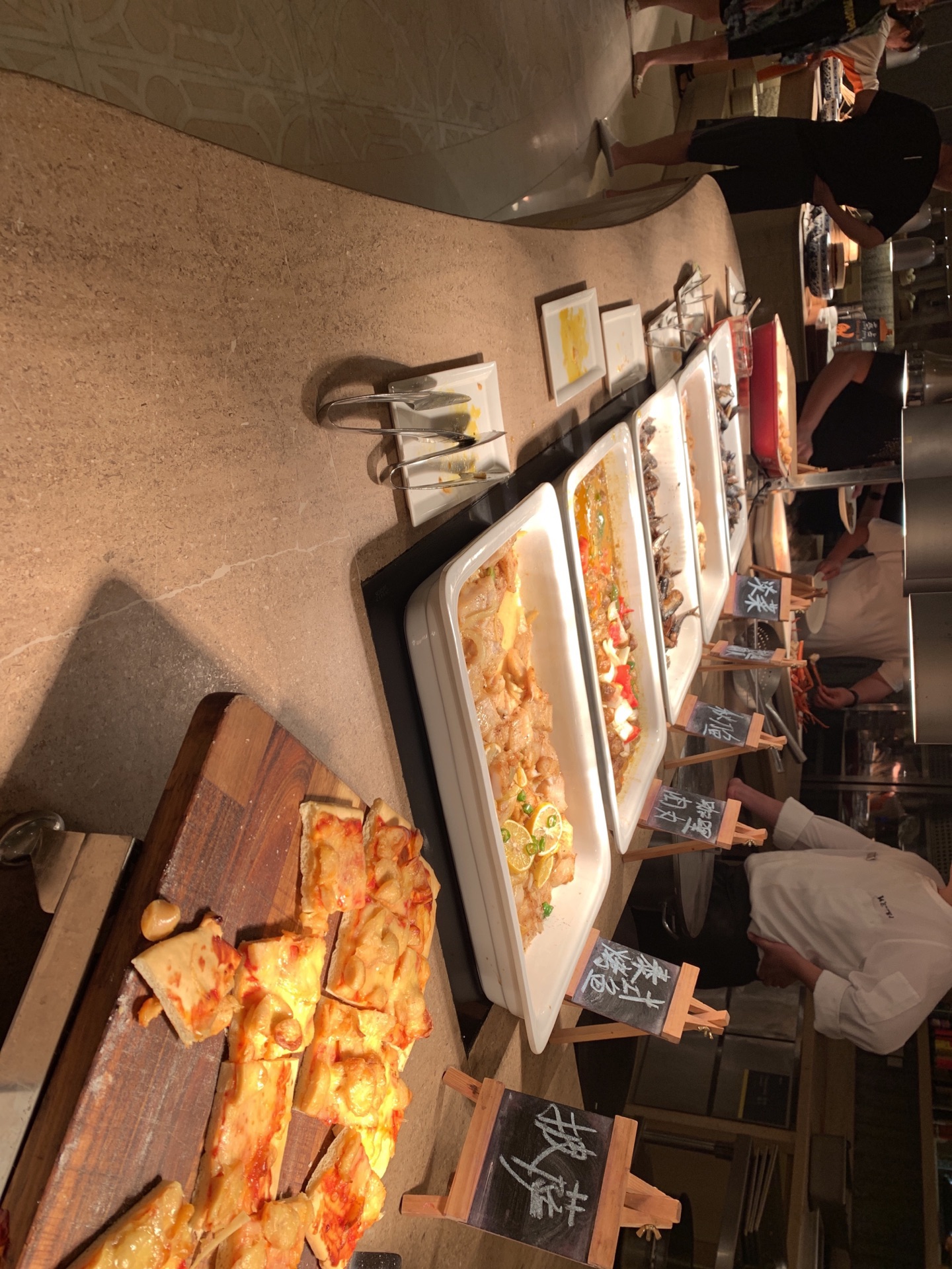 在上海听到Westin的牌子,你一定会抱着满满的憧憬,因为这个品牌代表着一种品质,无论是酒店还是餐饮应该都是数一数二的!然而这样的印象在舟山朱家尖的Westin完全被刷新,我们今天来说说这个晚餐的自助餐吧,198元/位的价格,可以说不算很高但也绝不算低。走进餐厅各种陈设感觉还是比较简洁大方的,等菜品上齐后,这失望就慢慢开始了。 【口味】作为舟山的酒店餐厅,首先应该呈现的就是海鲜特色,海鲜是有,但是从扇贝到老虎蟹再到青贝天呢,可以说没有一个是说得上好吃的,尤其是扇贝看上去极为不新鲜,青贝根本打不开!真的令人很无语,于是就可以看到大家都在拿三文鱼,而熟食部分却很少有人问津。烧烤区域这肉简直像柴一样,味道难以形容的难吃! 【环境】盆子拿出来摸上去都感觉油腻腻的,环境由于都是小朋友,可以说要多闹有多闹!这钱未免也太好赚了些吧!Westin你这是在做一次性客户嘛!