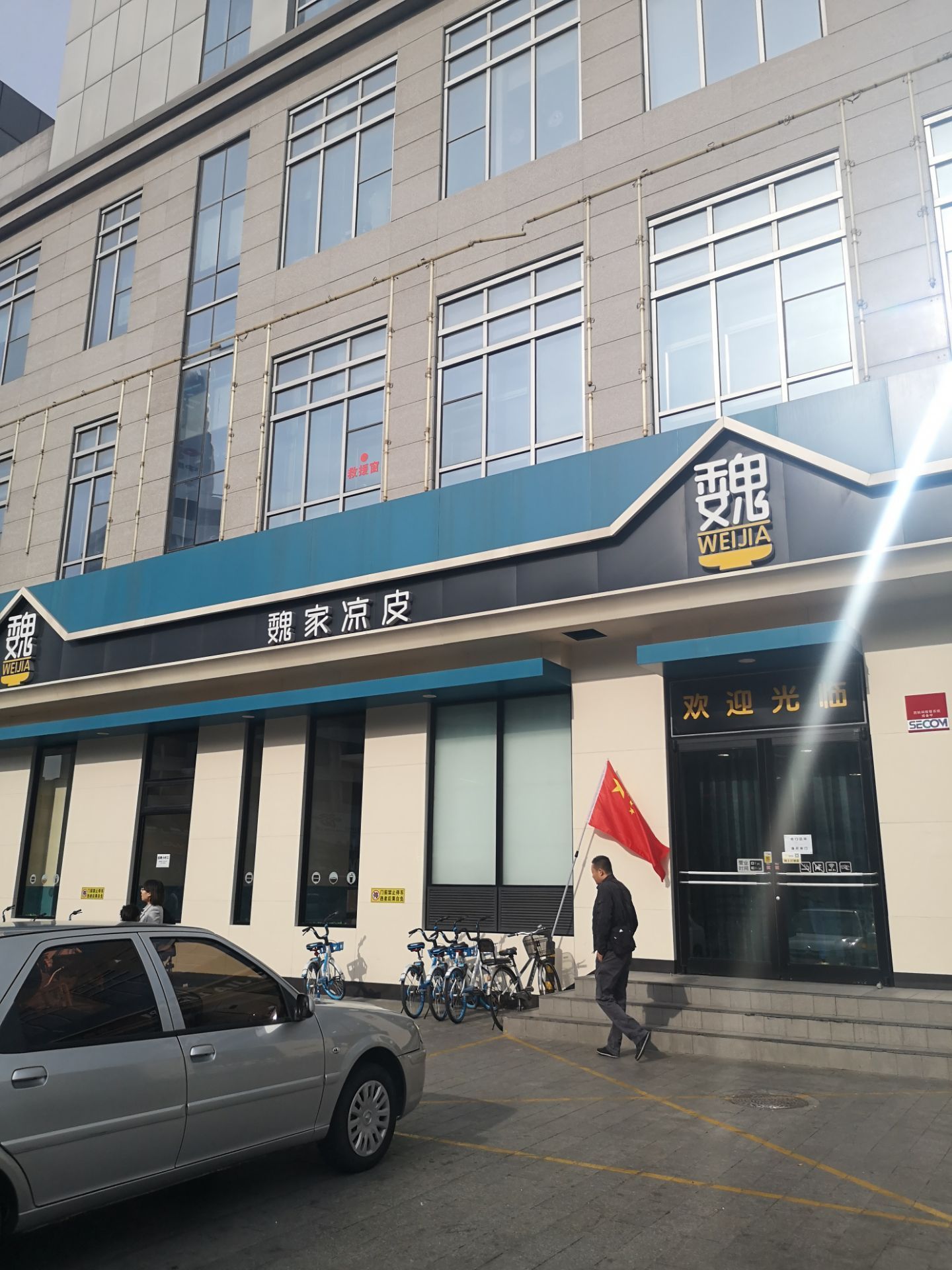 听说是西安的连锁店,来天津的第一天就看中了。 连续吃了四天酒店相同的早餐,今天不吃了。 去魏家凉皮买了个肉夹馍,外带。 馍香脆无比,买的是升级版的,肉也很多,就是肉的酱汁少了些。 餐厅完全没有西安风,到有西式快餐风。