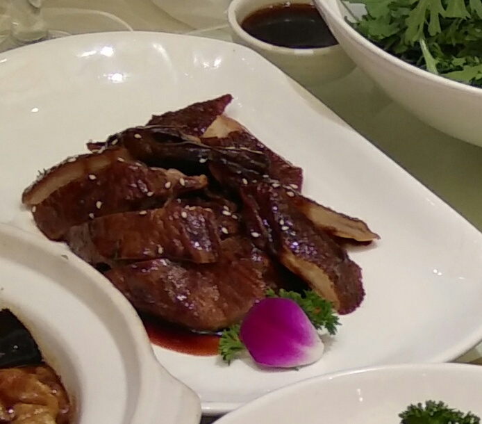 申宴酒楼大宁店进门处就很有特色,一辆黄包车停在门口,似乎告诉你这个酒楼是上海味道。他们家环境也很有上海特色,服务一般般,大概生意太忙了吧。点了本帮酱野鸭,特别入味,咸中带甜,鸭肉很鲜,也很酥烂,鱼香茄子煲很好吃,虽然是一道普通的家常菜,但自己家好像做不出他那个味道,很好吃,唯一的缺点油有点多。再来一盆清口的凉拌蒿菜,正好中和了刚才茄子的油腻,这样搭配比较完美。