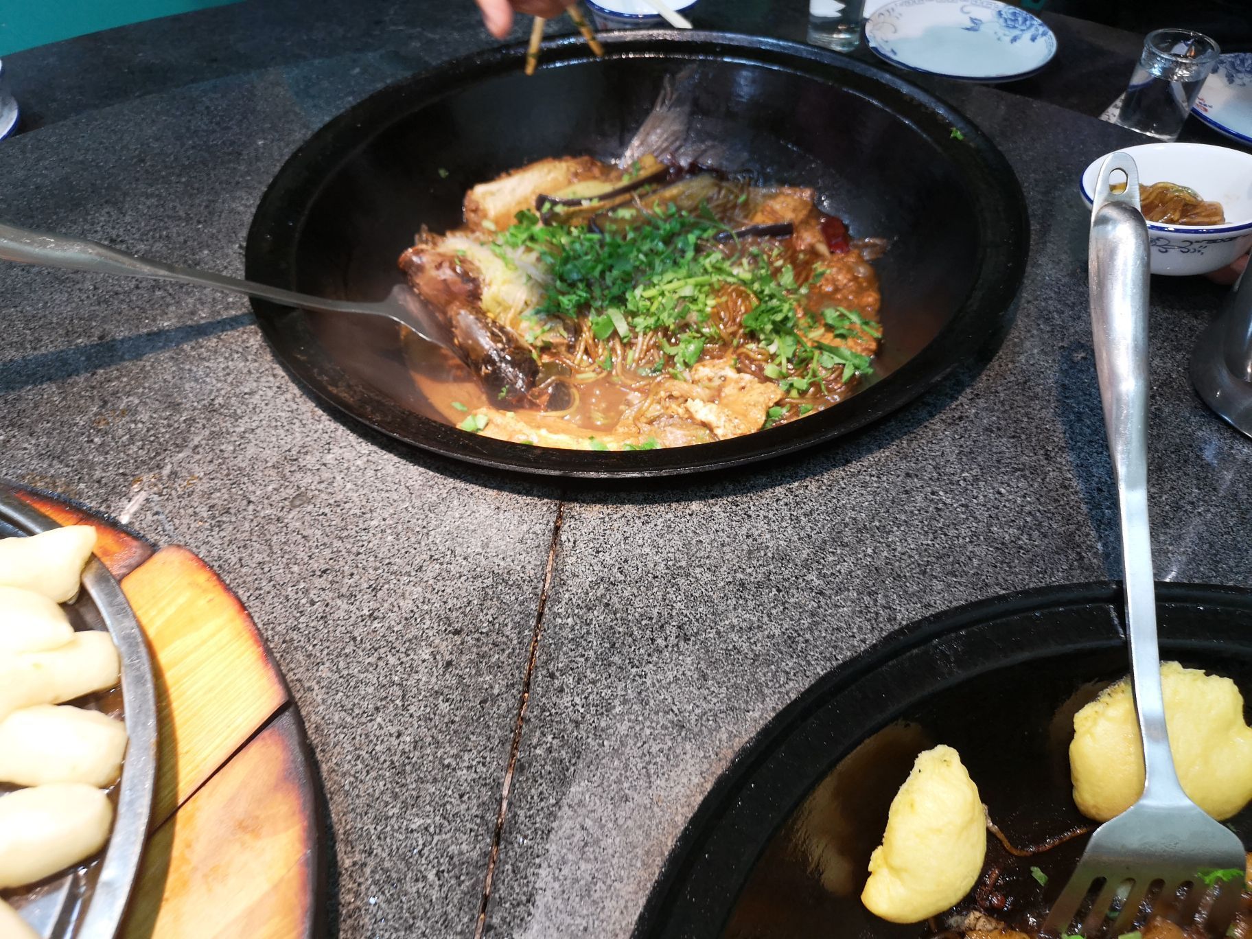 网友2019-10-06非常好吃的东北菜铁锅炖,我们尝试了小鸡炖蘑菇锅和鱼锅,各有特色,都非常好吃非常好吃的东北菜铁锅炖,我们尝试了小鸡炖蘑菇锅和鱼锅,各有特色,都非常好吃。贴饼子也好好吃,又香又甜,鸡肉入味,非常下饭。