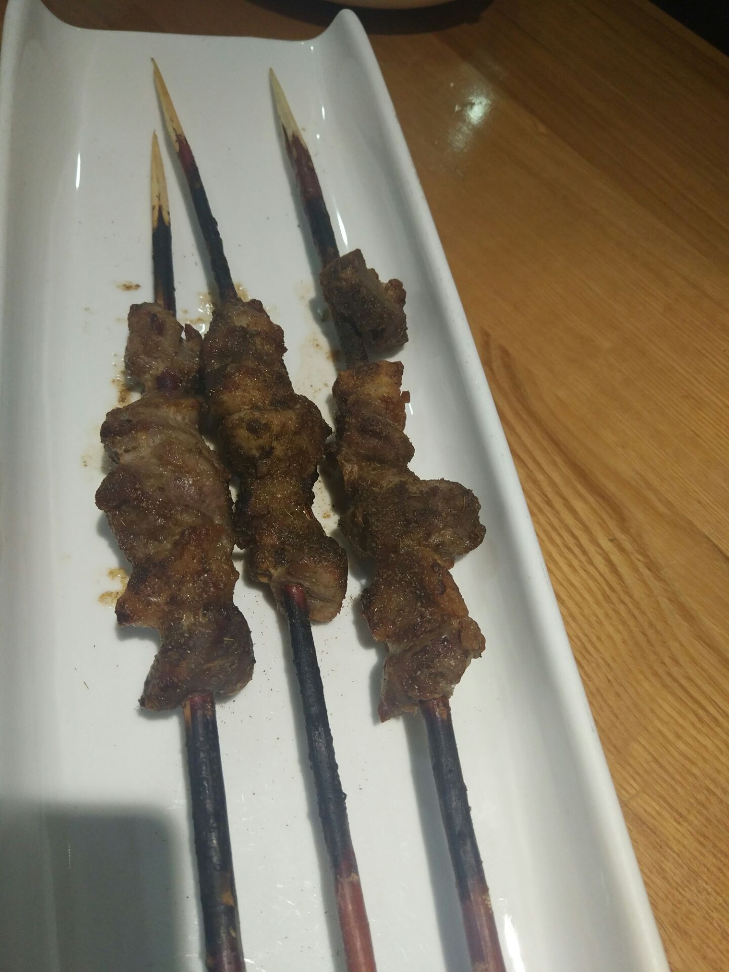 网友2019-10-07三个人吃了一百六十多。烤羊肉串和烤羊腿不便宜,可很好吃,物有所值。服务很好烤羊肉串和烤羊腿不便宜,可很好吃,物有所值。葱油意大利生菜才六块钱,自制酸奶六块钱,都很便宜。三个人吃了一百六十多。服务很好