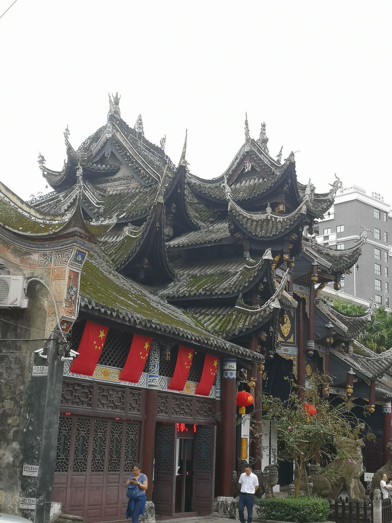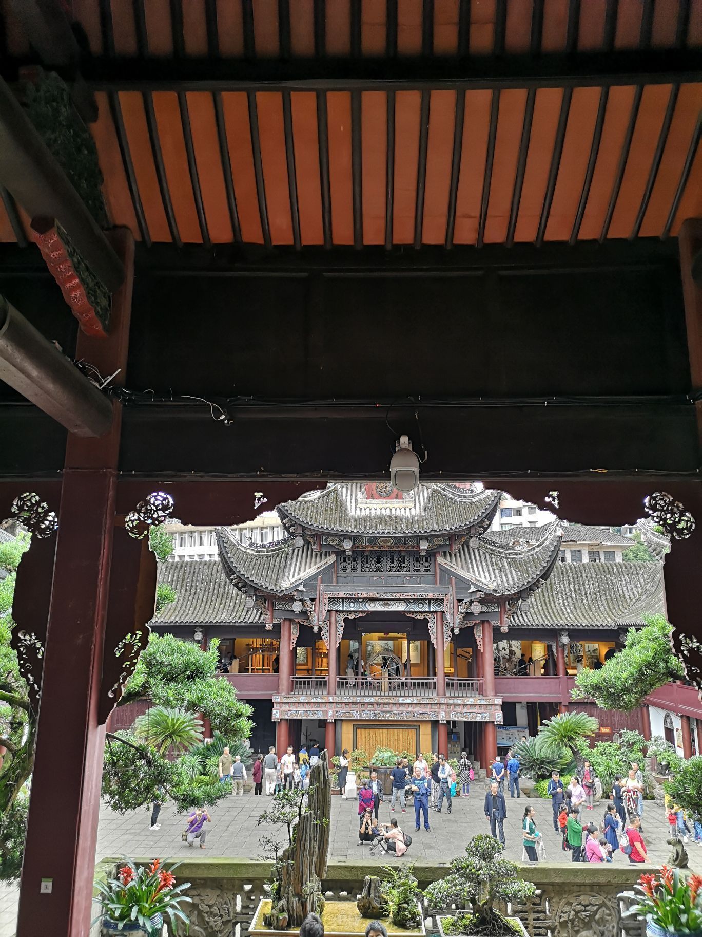 西秦会馆就是自贡盐业博物馆使用的建筑,博物馆的房子保存的很完整,很多石刻的墙画感觉就快要从石墙上被完整的雕刻成塑像一样,屋沿下木刻的人物,现在又上了油漆,很漂亮。屋顶的造型也是层层叠叠的,高挑的屋檐。