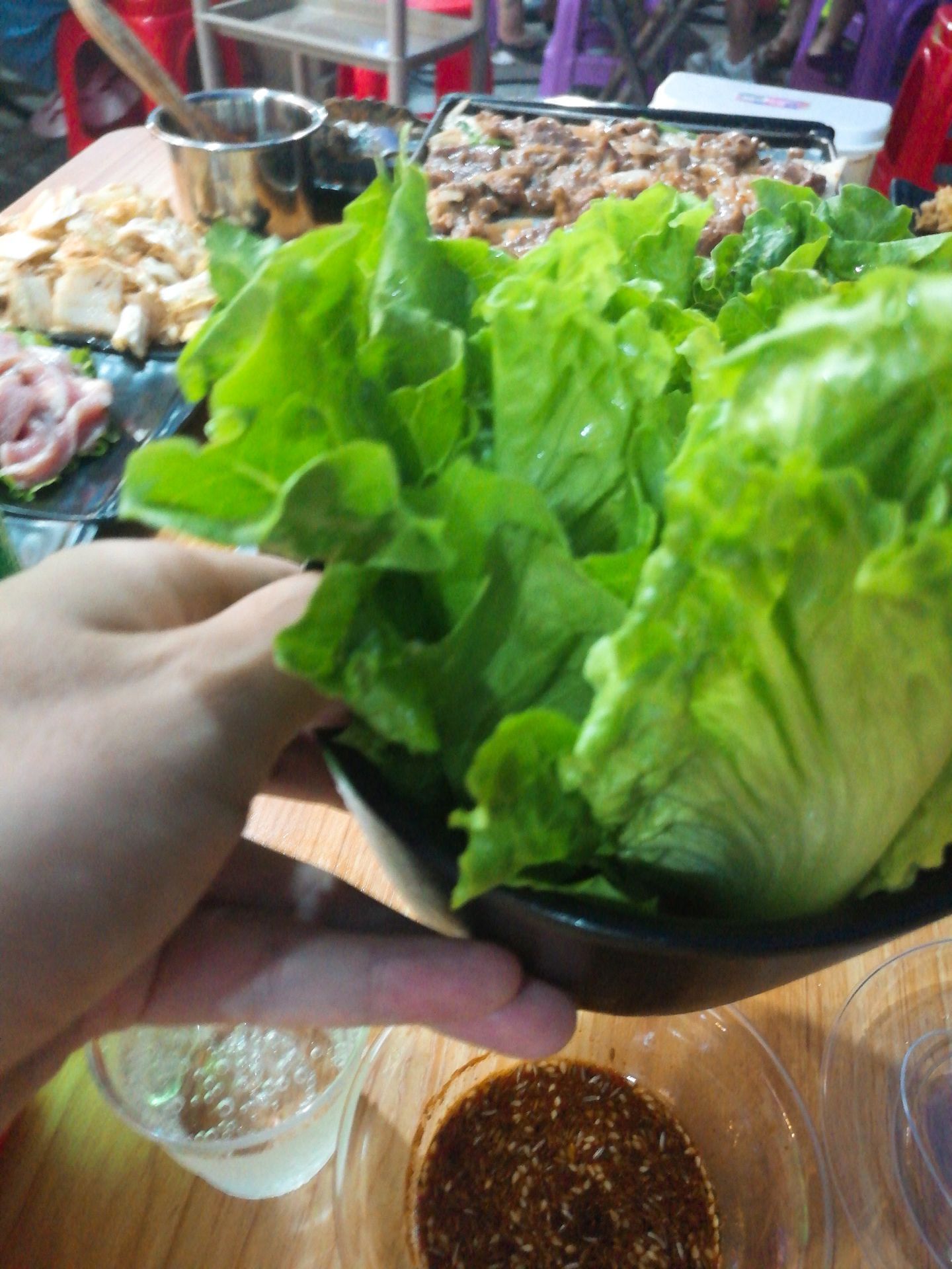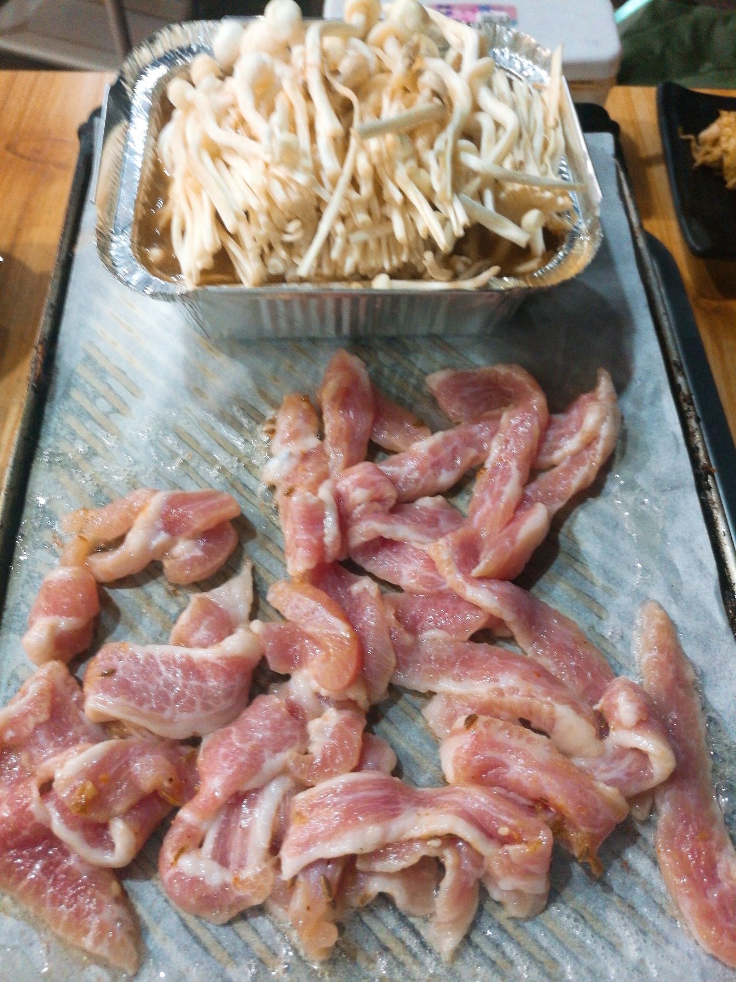 芳芳纸上烤肉(前埔城职店)就在城职门口那条东北烧烤一条街上的店,想吃烤肉就找到他们家了 牛肉,店家老板有提前腌制入味,直接烤熟后,然后包上生菜,很好吃,牛肉很嫩[鼓掌]酸菜五花肉,也是必点拉,烤好肯定也是要包上生菜吃,这样不会太咸,太腻,好吃。[呲牙] 另外像店家其他的菜如猪颈肉、鱼豆腐、大白菜,烤起来都是不错吃的,店里食材都很是新鲜。