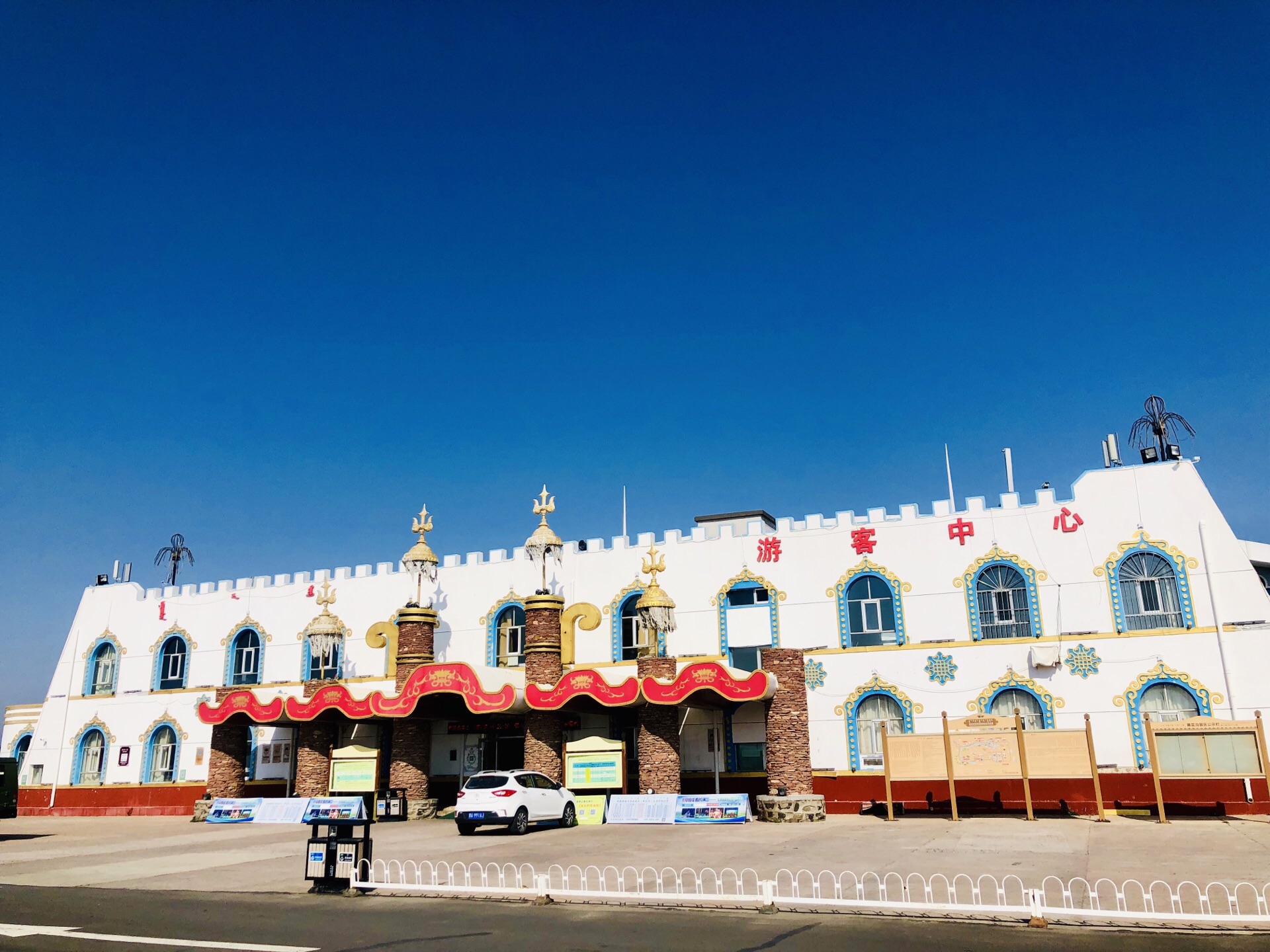 进入黄花沟的钥匙/窝阔台度假中心 首先,对于这个窝阔台,还是非常有好奇心的,毕竟他是成吉思汗的第三个儿子,而且也当过大汗,只是没有成吉思汗那么出名,也没有后面忽必烈直接成立了元朝,完成了我们最大疆域的时刻,但是就是他奠定的基础,才有了后面的辉煌。 今天到的黄花沟景区,首先通过的就是窝阔台度假中心(游客中心) ,这里难道过去是属于窝阔台的受封范围? •坐标:察哈尔右翼中期辉腾锡勒园区010乡道黄花沟旅游区南门 •交通:没有公共车到这里,只能自驾或者跟团或者租车,总归在这里一定要自己开车过来才方便。 •环境:下了车,就看到蒙古包了,真的是非常由当地特色哦,这里就是游客中心,去景区一定要经过这里;而且演敖包相会的地方也在这里,只是不是每天都有,旺季是有的,但是淡季没有人了,这里自然就不开了。除了售票处还有很多餐馆、住宿的蒙古包、集装箱等等,可见夏天这里的热闹场景啊,还是值得来一次的,夏日的夜晚肯定非常热闹。