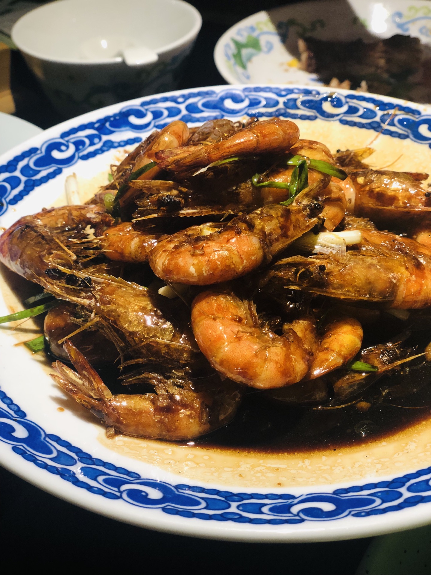 国庆到中庚漫游城购物,搜到这家在南方商城的杭帮菜。南方商城有2幢楼,开始还走错了。怕排队,12点不到就去了,刚好有位子。 招牌菜【老头儿油爆虾】总归要点的。果然符合上海人口味,甜甜的、很好吃。 【腐皮杭白菜】上面居然还有两个虾。杭白菜很难烧,比较难入味。这道菜我很喜欢,烧的软而入味。 【炒花蛤】酱汁相当不错哦。其它的菜也都蛮好吃的,比如酱鸭、豆苗。 上菜快。服务员加水勤快。买单会提醒有优惠活动。
