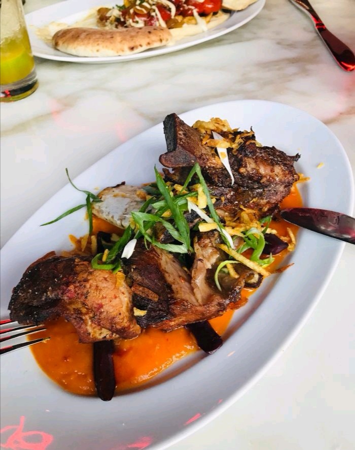 ...一代的菜,所以感觉菜系比较独特,里面的鱼做的有特点,很入味,而且先是炸过得,和国内一些做法很像本来以为做的是欧洲菜,没想到做的是中东一代的菜,所以感觉菜系比较独特,里面的鱼做的有特点,很入味,而且先是炸过得,和国内一些做法很像。