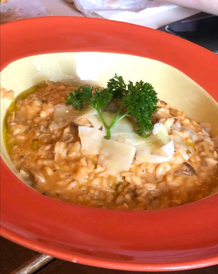 意大利海鲜饭很好吃,意大利博饼很好吃,类似于脆饼,特地要了一份意大利火腿,放在博饼上面特别的好...新开的意大利餐厅,意大利海鲜饭很好吃,意大利博饼很好吃,类似于脆饼,特地要了一份意大利火腿,放在博饼上面特别的好吃哦,服务员挺热情。