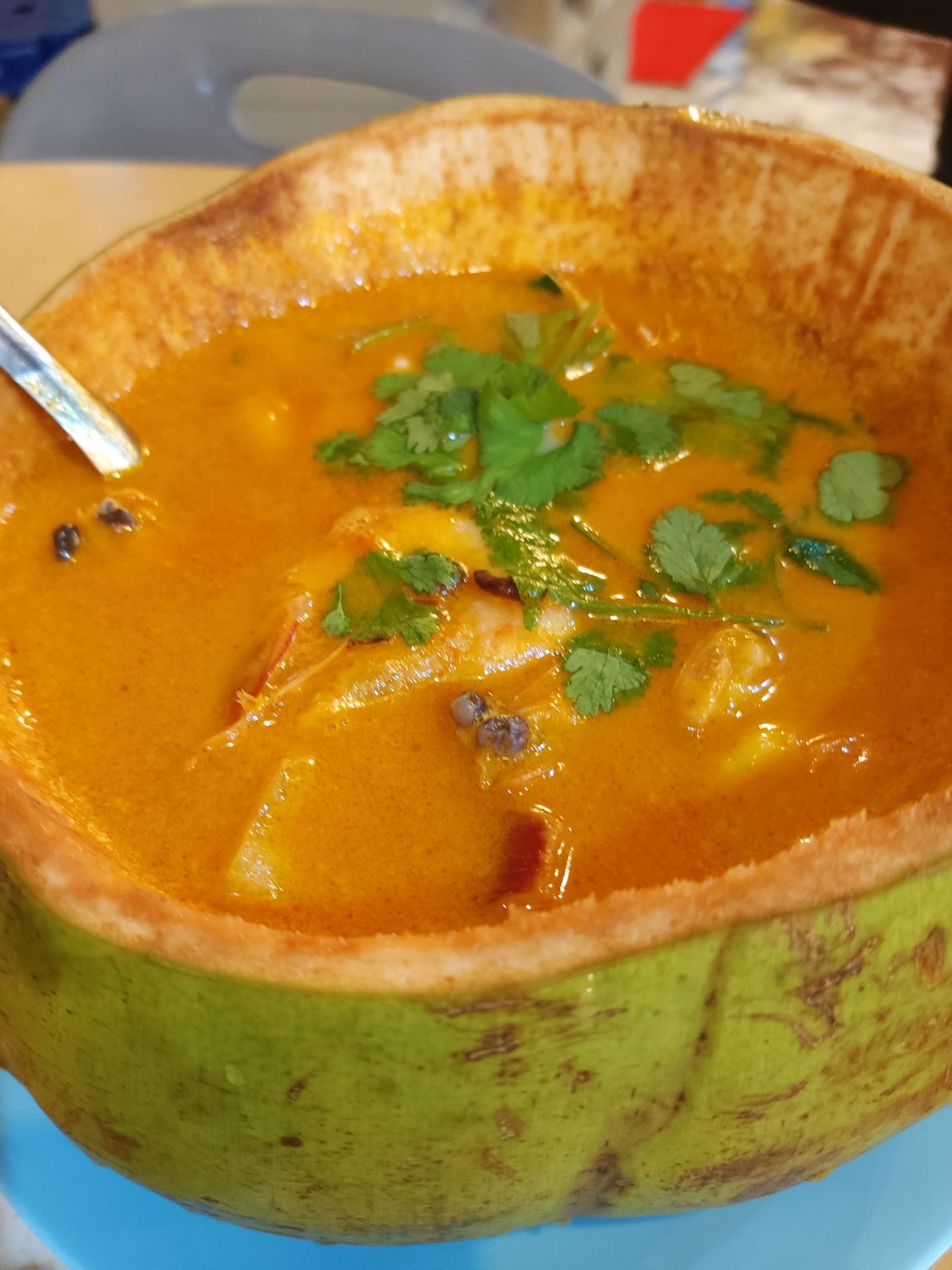 懶惰的我忍不住要寫評語,好評是怎麽來的?因為先去沙巴,吃了兩天海鲜,之後天天都惦記着。 在檳城沒有計劃吃海鲜,剛巧下雨了,又想在壁畫街逛,看看這家評語不錯,便打車過來。對面有家老餅店,看着挺不錯,下了單便跑去買點吃的給吉隆坡的友人。前後不到十分鐘,四個菜和飯都全上了,神速啊!吃了一口椰子蝦,完全明白,就是快餐的水平,食物已煮好,再弄熱~ 看看厨房,煮的都是馬拉人,怪不得!