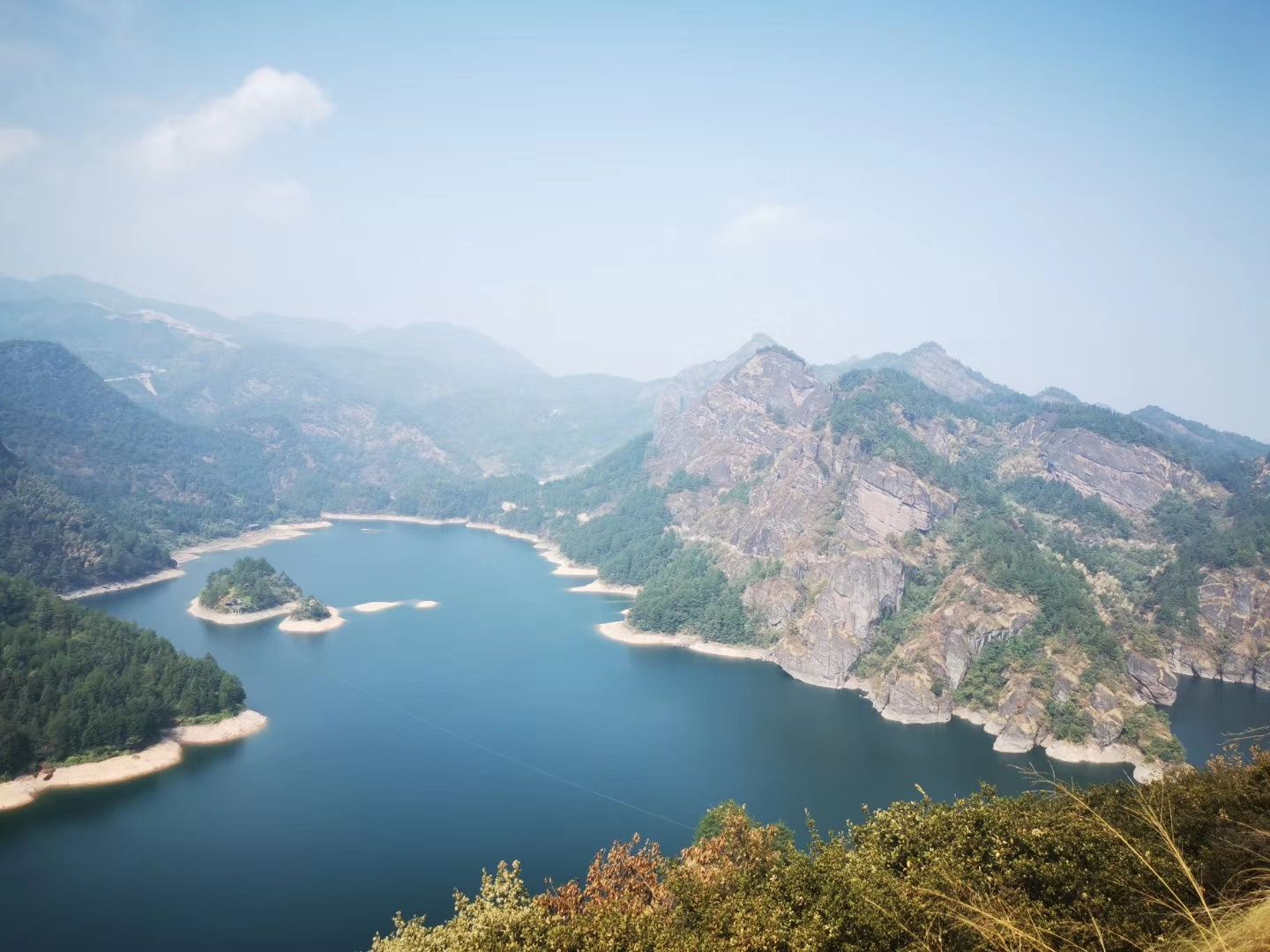 网友2019-10-11在铜钹山下的绿树掩映之中,九仙湖以其飘逸的神态与山水相依,倒也十分的奇妙与般配在铜钹山下的绿树掩映之中,九仙湖以其飘逸的神态与山水相依,倒也十分的奇妙与般配。这里的游客并不多,湖面静谧得如一面镜子。