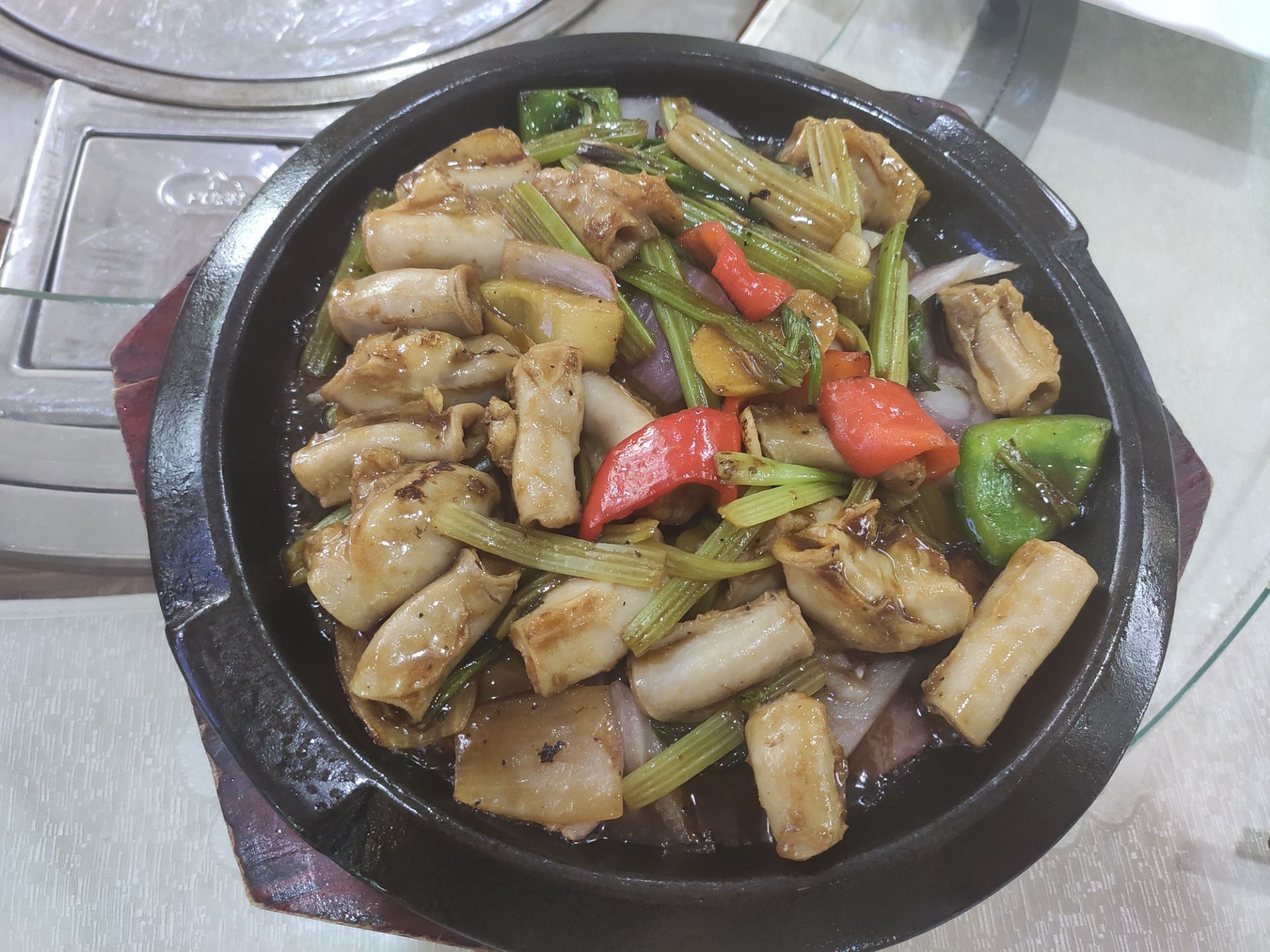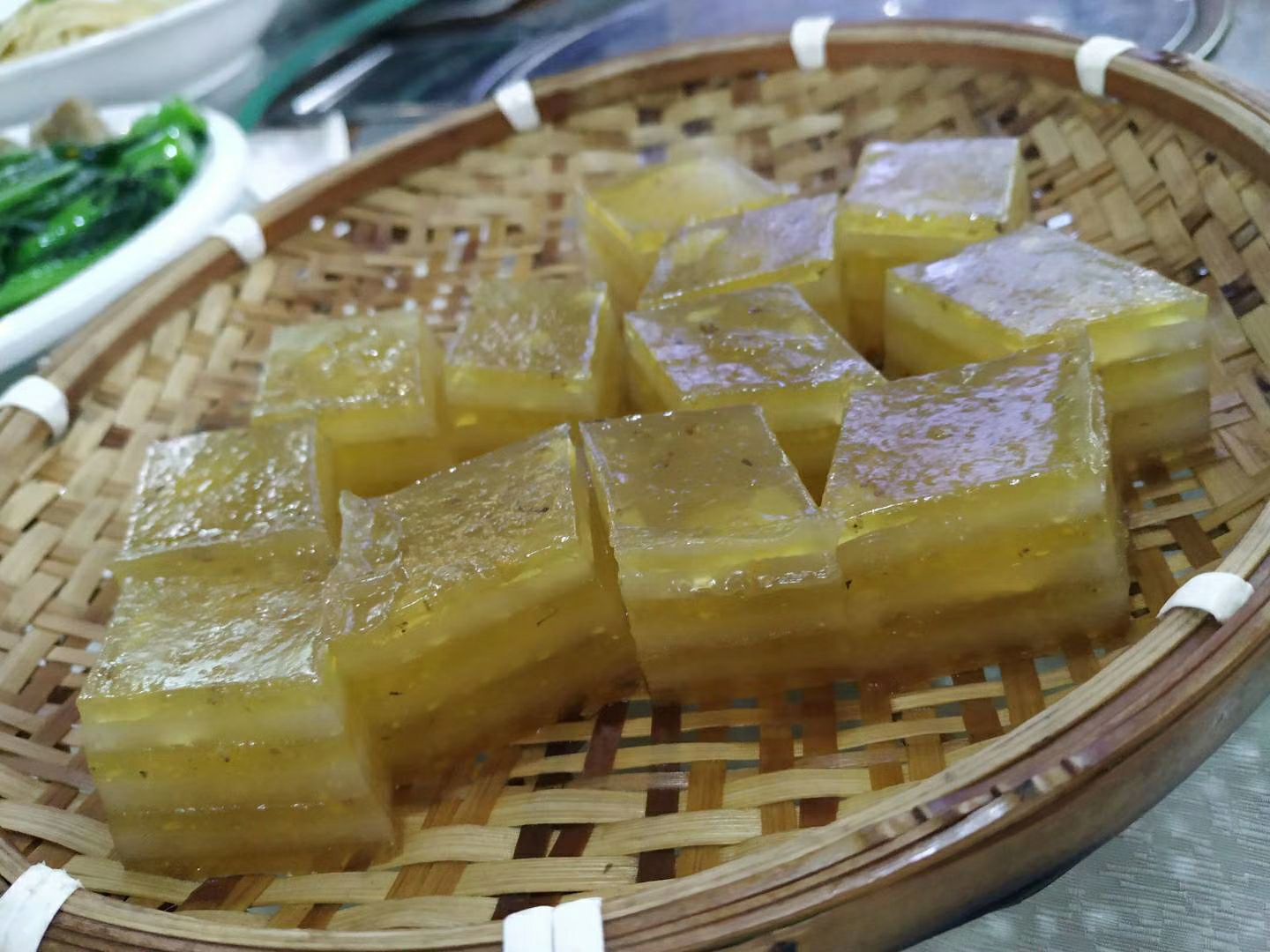 环境一般,不过所在的位置还是挺方便的,开车很好找。烧鹅配陈村粉是这里的招牌,不过我们6个只有原来配的那点陈村粉根本不够吃,刚刚看到一个穿着便服拿着菜走路很霸气的人走过,当场叫他老板有没有单独卖烧鹅汁陈村粉的,老板看了一下卓上慢慢的菜,当场豪气的说,我送一碟陈村粉给你们。在这个世界果然口甜一点,总会有好果子吃。 然后就不得不提一下那个手抓骨了,非常好吃,烤得很有新疆的风味,还有那个桂花糕也是非常值得一试。