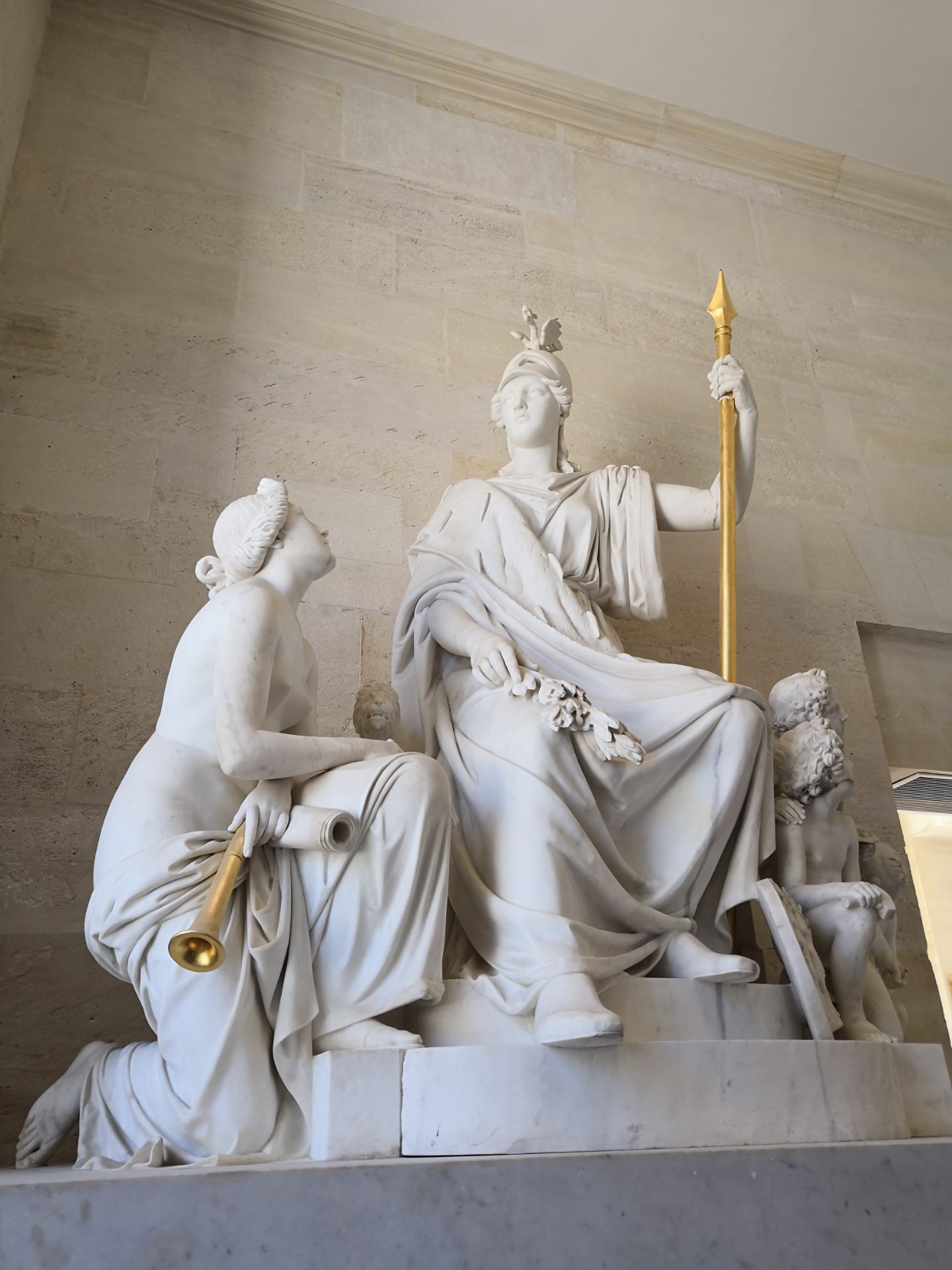 凡尔赛宫,富丽堂皇,美轮美奂,随处是精美的雕塑和壁画,令人叹为观止! 每个厅室都有自己的故事。在入门的时候每人可以领到一个讲解器,按照给定的路线游览,讲解器有多种语言可供选择。走到对应的房间后,找到该房间的编号,输入对应编号即可听取对该厅的讲解,避免了盲人骑瞎马,看完了还不知道怎么回事的尴尬。如果愿意,还可以重复听,详细了解每个房间的故事。如果每个房间都这样细细地参观下来,只怕一整天的时间也不够!但如果时间足够,那么多精美的壁画,那么多传神的雕塑,我非常愿意花更多的时间在这里!