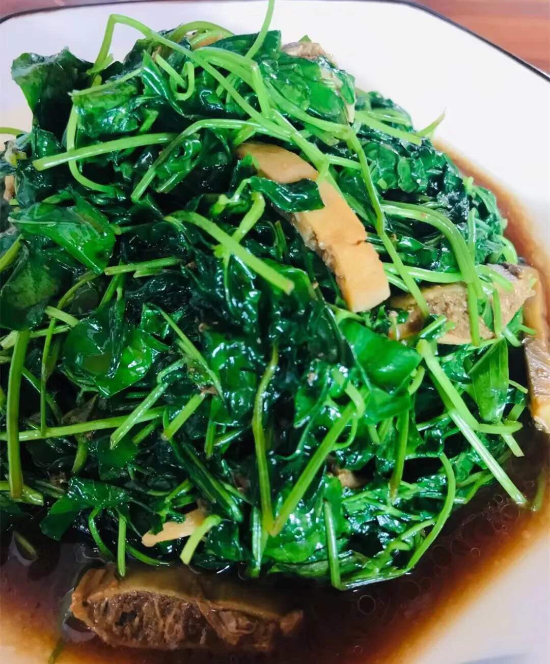 在浅水湾生意还挺火的一家店,一楼经常座无虚席。蚌肉金花菜,店里的招牌菜,很下饭,口味略重