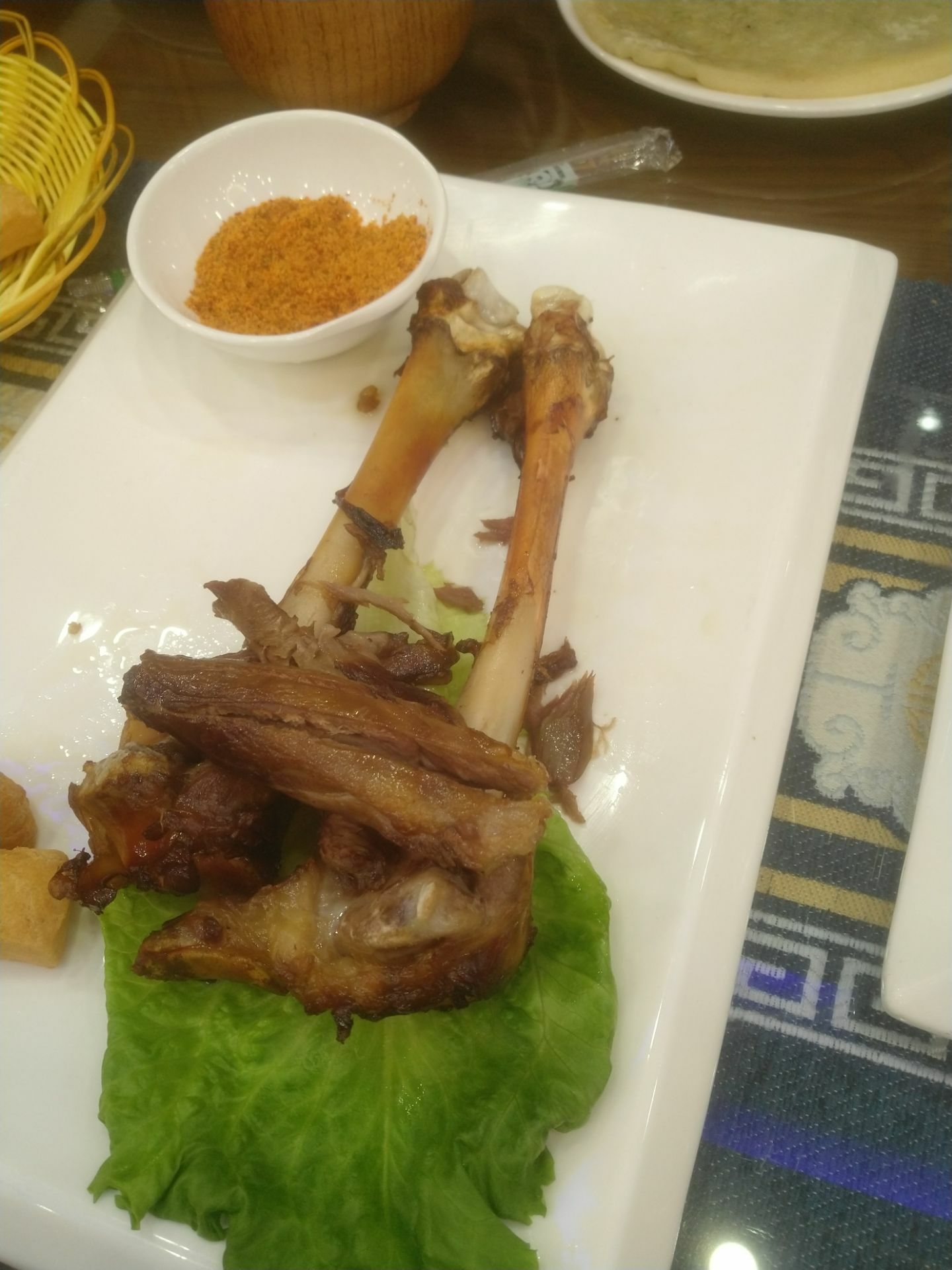 在住的宾馆对面随便找的,没想到竟是当地最好的馆子,本来想吃羊排的,但去晚了没有小份的了,就要了个羊小腿骨,味道很浓,很嫩,不错。锅茶是第一次吃,48元的价格,真心觉得很值,味道也不错,个人喜欢里面的奶皮和牛肉干(当然,肉非常少)。对了,馅饼也很好吃。其他的就是普通菜的味道,没什么好说的了。环境不错,可见图片。据说还有表演,只是没看到。