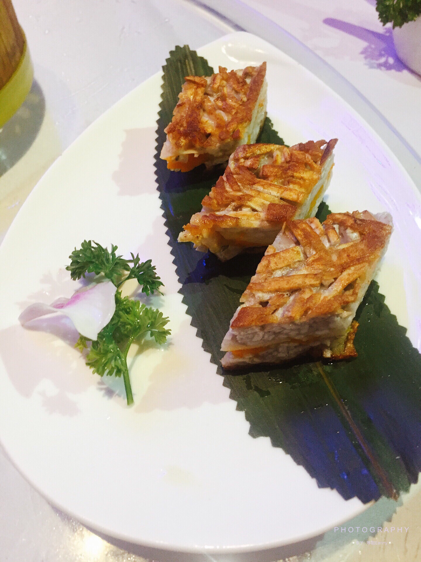 无艺术不生活,从艺术画展走进来,才发现这里隐藏着很大的蜂巢主题的餐厅,大厅有超大的屏幕,晚上还有驻唱,有点偏民谣的风格,给人听起来很舒服。 这次主要是吃这里的粤菜,港式茶餐厅。 笋尖虾饺皇 晶莹剔透的虾饺,咬下去满满的鲜虾,吃起来口感鲜脆。 红米脆肠粉 红色的肠粉里面包着大块的虾仁和炸得酥脆的油条,口感丰富,吃起来很香浓。 鼓汁蒸凤爪 港茶里面必点的,凤爪入口即化,吃起来停不下来了。 百香果布丁 可爱的百香果里面竟然藏着布丁,吃起来口感滑嫩细腻,淡淡的百香果味道,非常清爽解腻。 飘香榴莲酥 金黄的榴莲酥看起来可爱,吃起来也很爱,对于榴莲爱好者来说,超爱的,吃起来很满足的流心榴莲。 Tips : #哆啦爱美食# 【餐厅名称】在东方·艺术馆餐厅 【餐厅地址】环岛路1697号 【所属菜系】粤菜 【人均价格】100+ 【特色美食】笋尖虾饺皇 红米脆肠粉 飘香榴莲酥