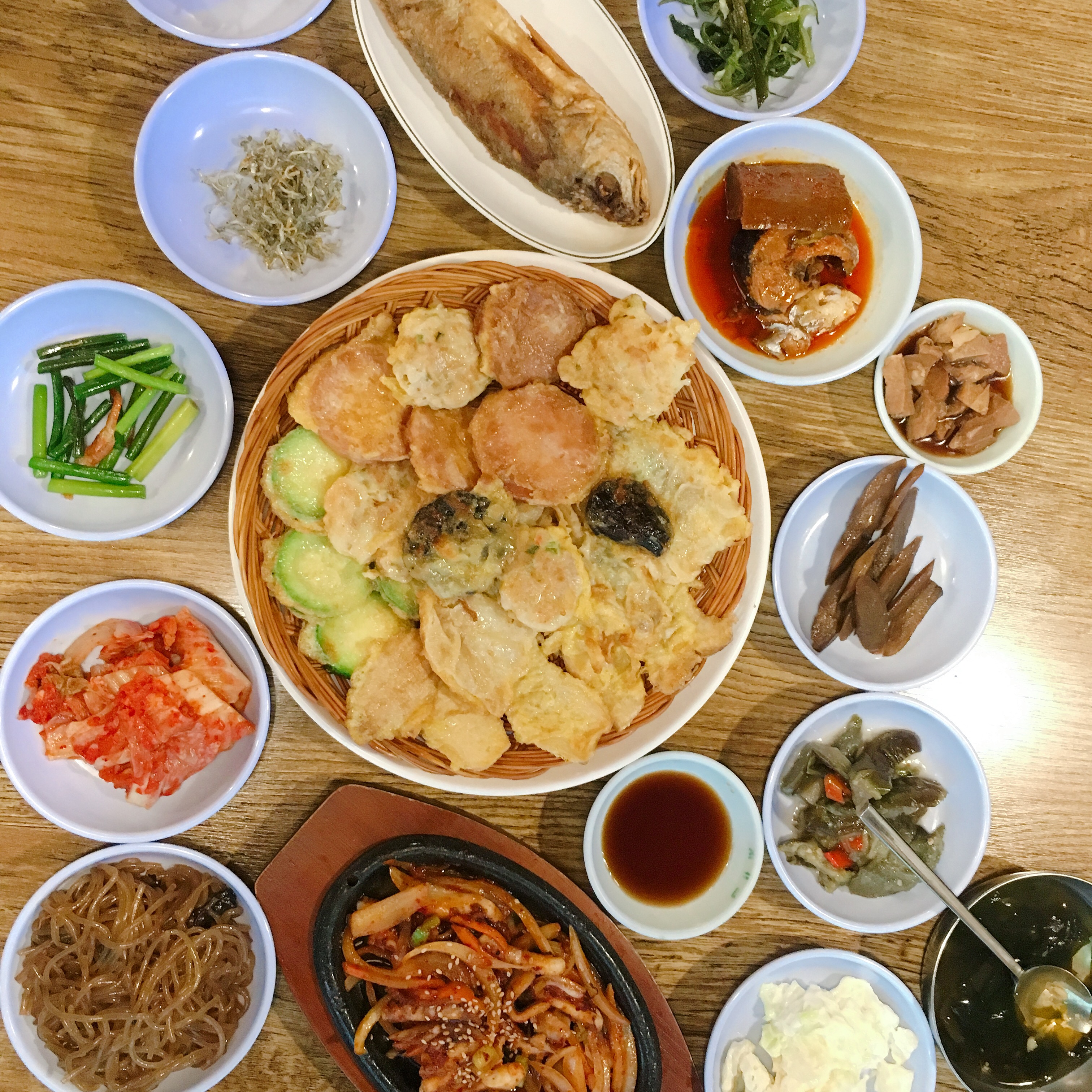 大名鼎鼎的岳父家,终于开吃了!!小菜好多,两个人根本吃不完,肚子都吃撑了,还剩下好多,太浪费了[泪]建议过去的同学可以三四个人一起哦!我推荐煎饼拼盘,酱牛肉,还有海带汤~煎饼拼盘有菜有肉,刚出来的时候热乎乎,外面脆脆的,里面软软的,好香~海带汤不咸不淡,味道刚刚好,刚上来就干杯了,哈哈哈,还有米酒,很好喝,米味酒味完美融合[ok][ok]