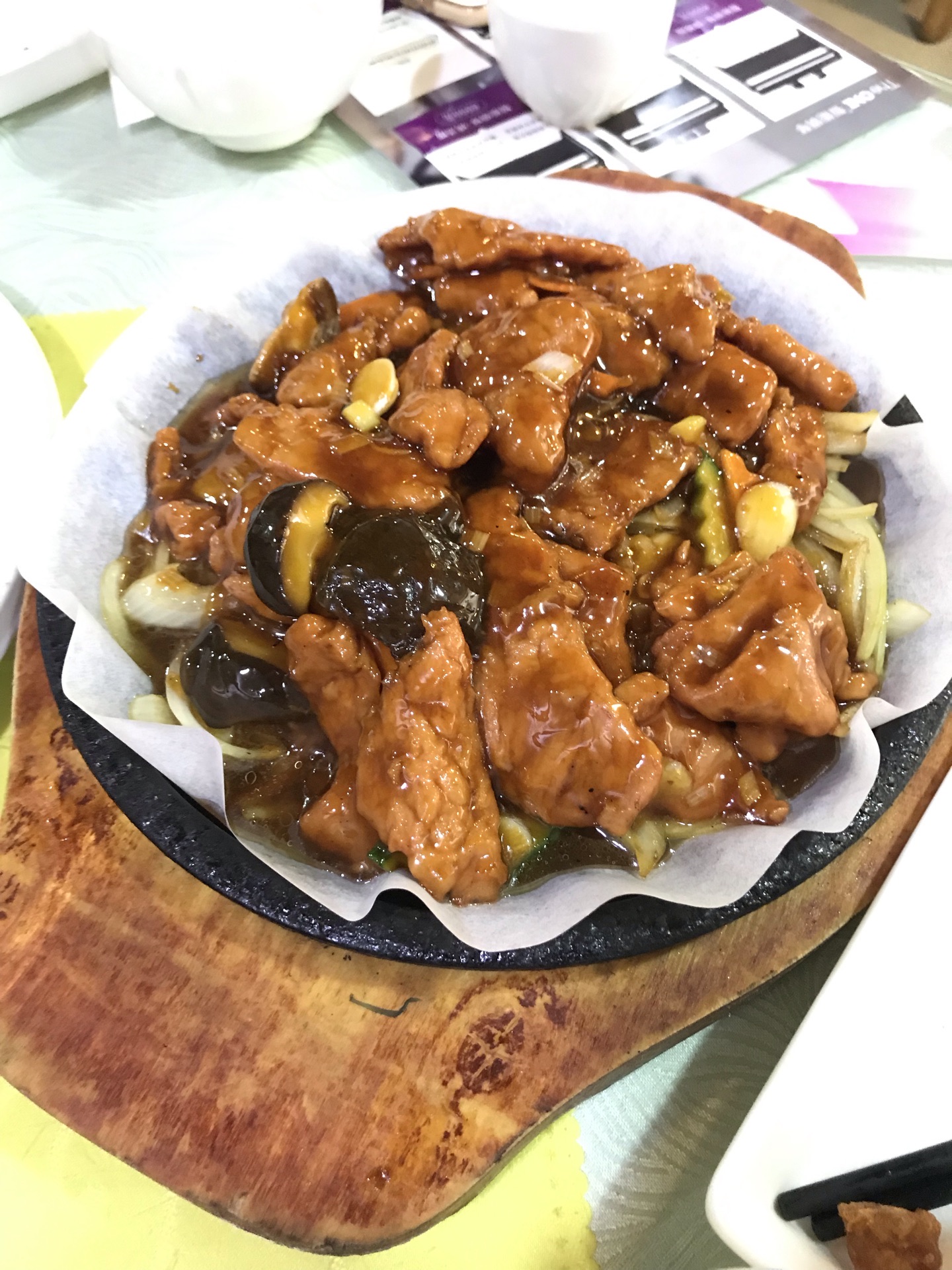 「铁板牛柳」同事每次都点,牛肉很嫩,底下点了一层圆葱,入味很好吃。「茄子烧海兔」好吃好吃