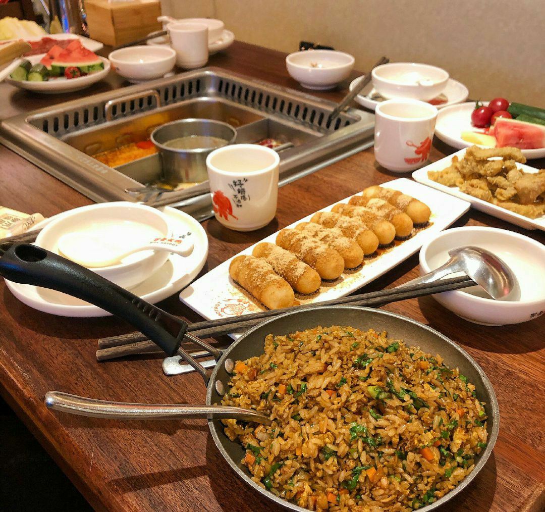 【锅底】点了菌菇,牛油,番茄三合一的锅底。牛油锅底都是服务员现场拆包放进牛油块的,看的见的放心安全。 【巴邑炒饭】这个一定要放在开头写,谁能想到一家火锅店把炒饭做的如此好吃,里面有鸡蛋,胡萝卜,火腿肠,青菜,还有年糕颗粒,我的妈呀,而且酱油调味刚刚好,米饭粒粒分明,看起来油润润的,但是吃起来一点都不油 一定要点。 【巴邑秘制牛肉】超级厚的牛肉,主要是超级嫩,没有什么筋膜会搁牙,一口一大片太爽了。 【虾滑】又是一名优秀的选手,肉眼可见的大颗虾肉 混合着虾泥,超级Q弹,是火锅店里虾滑的佼佼者。 【丸类拼盘】一共12颗,4种丸子各3颗,分别是蟹籽包,芝士包,黄金芝士烧,牛肉丸。 【午餐肉】不是淀粉的午餐肉哦,是实实在在肉在里面的午餐肉,实在。 【红糖糍粑】去哪里都必点的红糖糍粑,巴邑做的也很优秀,黄豆粉和红糖调配的刚刚好,而且一个个都是很扎实的圆鼓鼓的麻糍。 【小酥肉】虽然我觉得小酥肉就是比不上泡精肉,但是巴邑的小酥肉还不错,都是瘦肉,不会像以前我在别的火锅店吃到有带肥肉的那种。 服务非常到位,上菜很快,而且服务员会很及时的给你撤空盘,不会热情的特别过分,但是会让你感觉很舒服,好评好评。