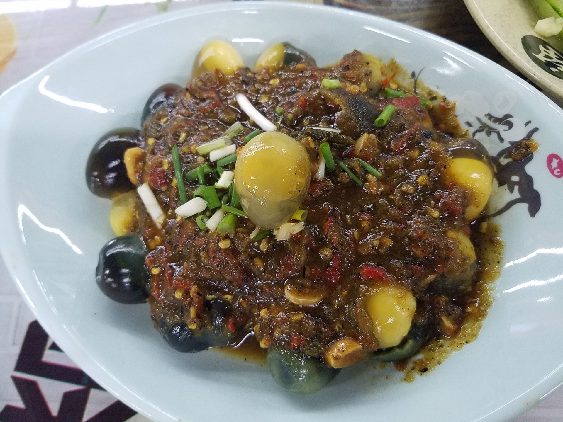 晚上去的,这家生意最好,完全坐满了,而且还在翻台。来万州一定要吃烤鱼的。鹌鹑蛋皮蛋味道也不错